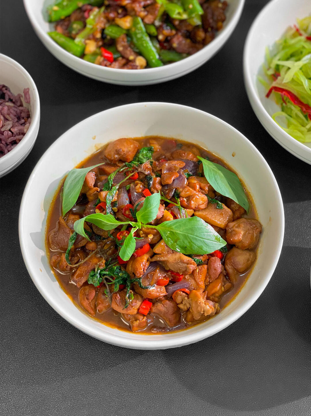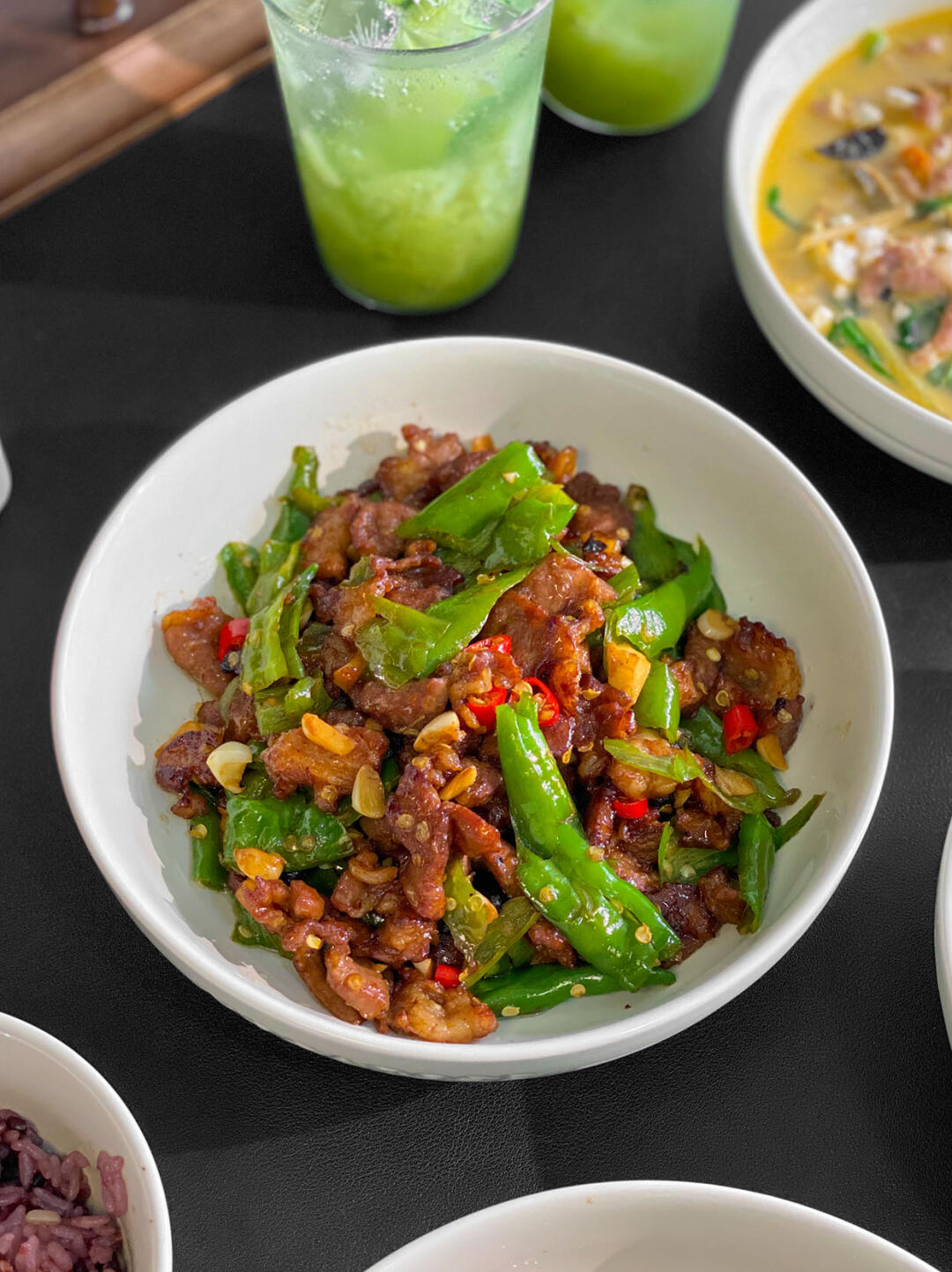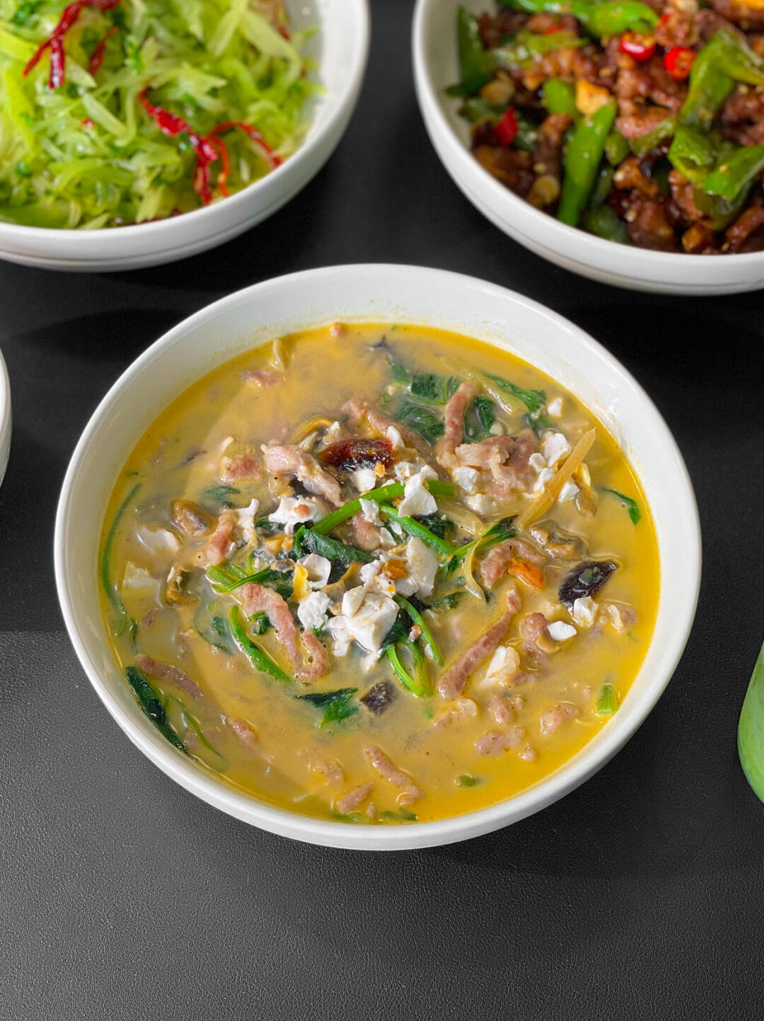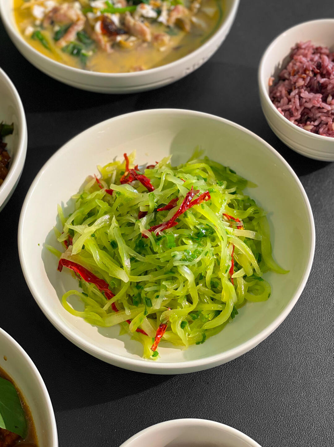 今日菜单🥣: 1️⃣三杯鸡 2️⃣辣椒炒肉 3️⃣上汤苋菜 4️⃣葱油莴笋 葱油莴笋很惊艳,嘎吱脆、满满葱油香!