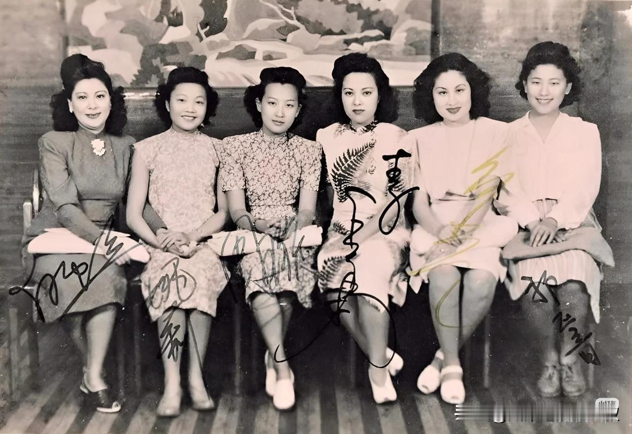 40年代的老照片,上海的女明星合影照片。
