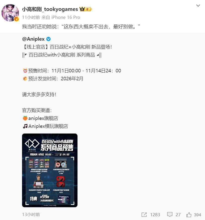 【神人周边[允悲]】Aniplex推出了「百日战纪×小高和刚」系列周边,包括小高和刚亚克力立牌、徽章和明信片等,预计于2026年2月发货。 ​​​