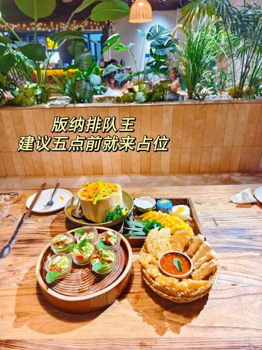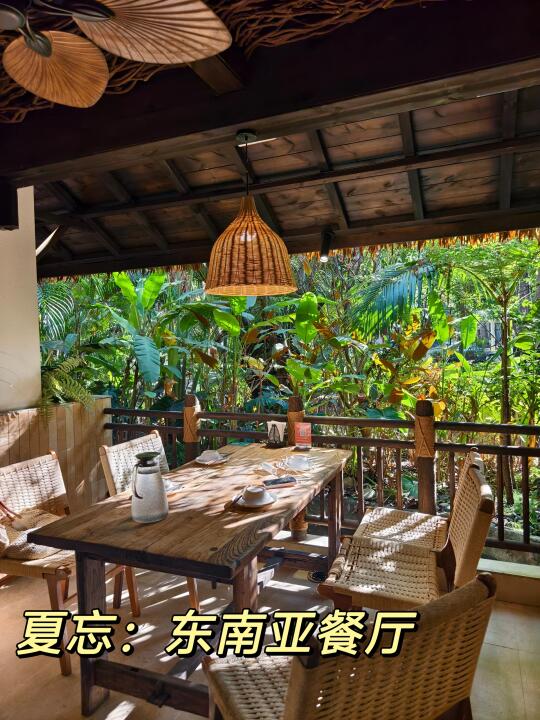妥妥的人气排队王👍🏻就在大金塔附近。但是他家线上可以取号,转完景区直接就餐👏走进夏忘就仿佛置身热带雨林,木质建筑被小河和植被环绕,池中金鱼嬉戏,清幽的音乐环绕在耳边,一整个爱住了🥰