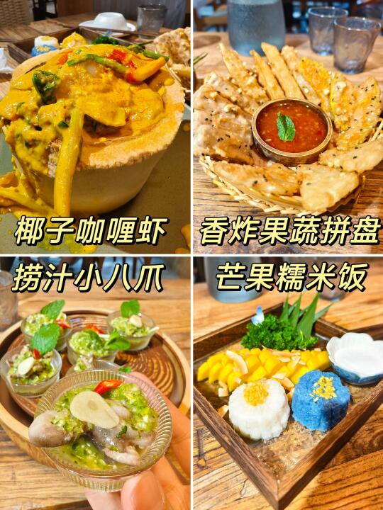 泡鲁达、椰子冰沙、椰子冻是必点,甜而不腻。小吃舂鸡脚、牛肝菌炒饭也超受欢迎👏就是人多的时候服务跟不上,建议避开饭点~