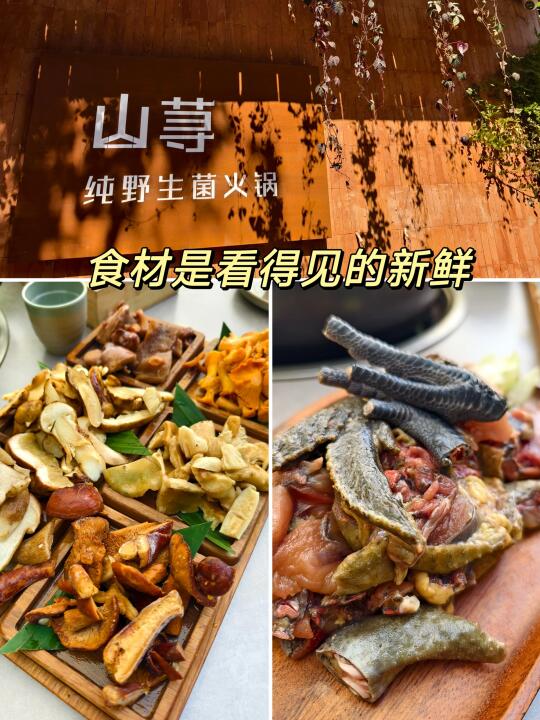 🔺野生菌拼盘:必点,六种当季的野生菌下锅,煮熟后先来一大碗汤,再吃菌子,妈呀,我的口水已经忍不住了