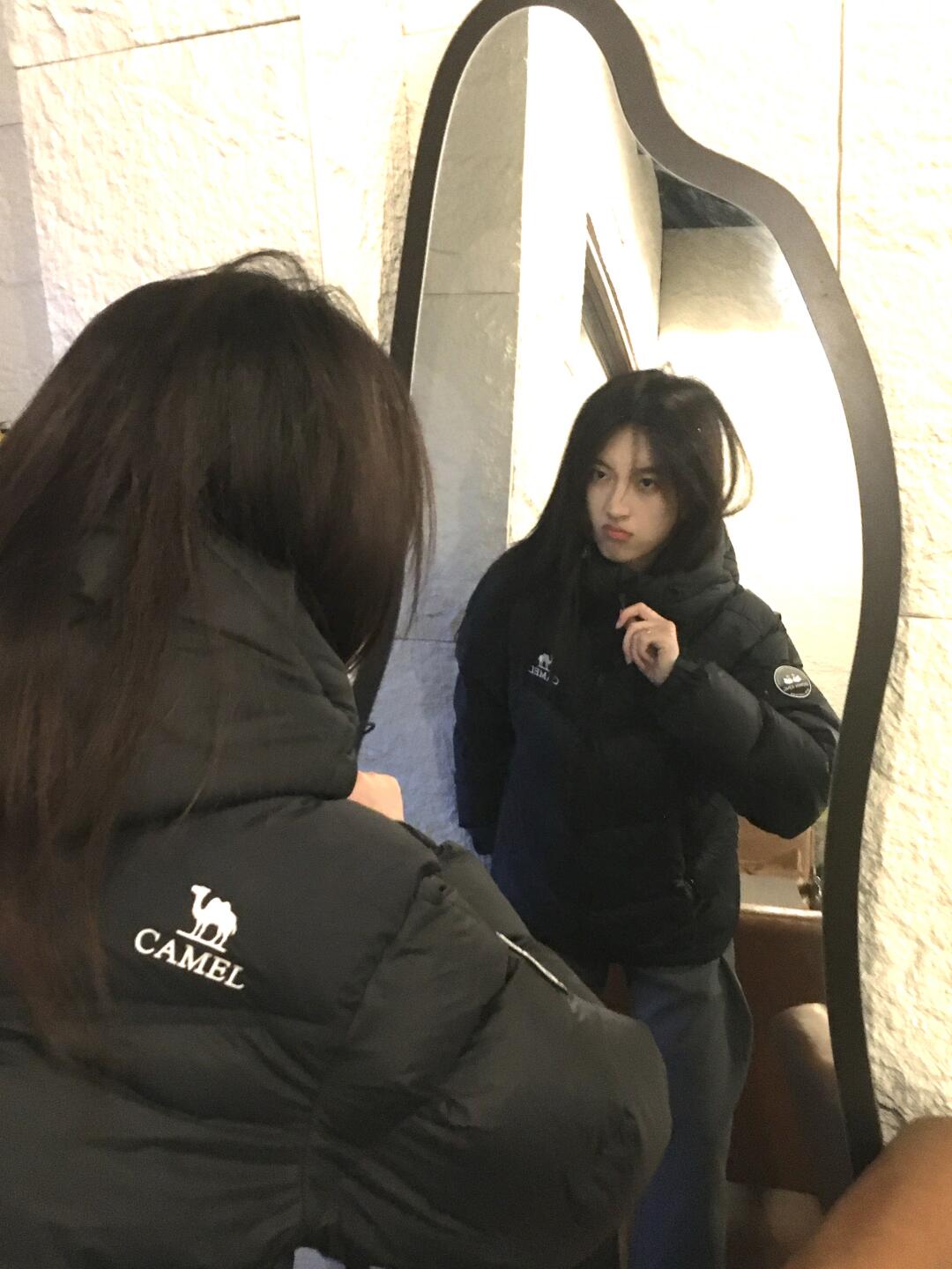 晚上走在街上,看见个少女,长得那叫一个好看。她脸上化着精致的淡妆,眼睛亮晶晶的。