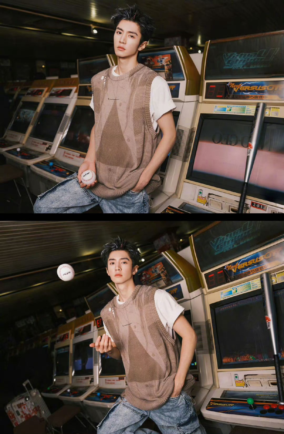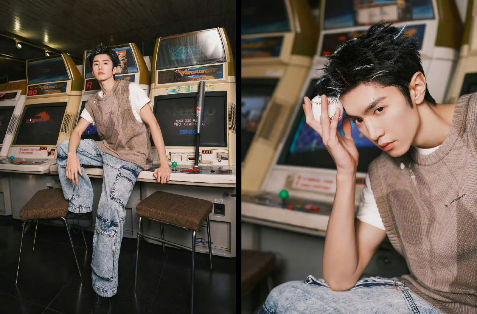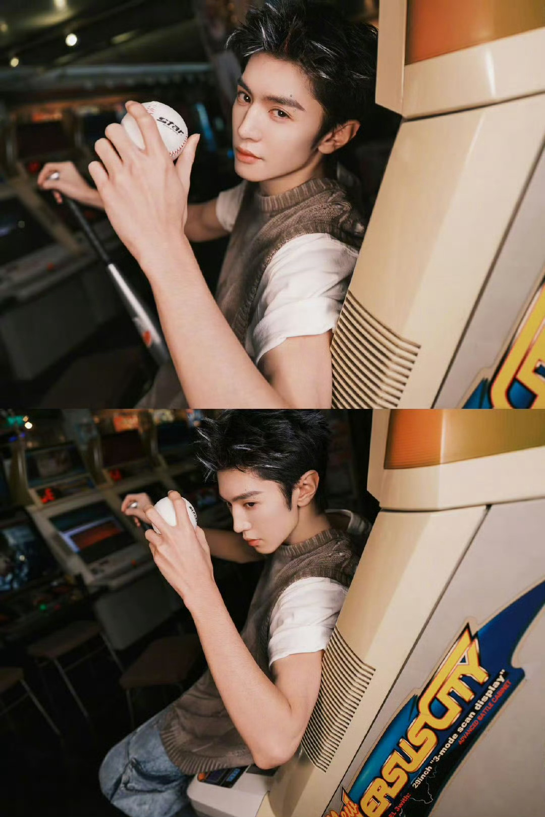 这个超绝热血番还得是陈哲远,卡在生日当天零点发的这套游戏厅写真只看图就好燃啊!边看脑子里就能边配热血传奇超燃BGM,张扬的白色挑染大背头造型消化得也很好