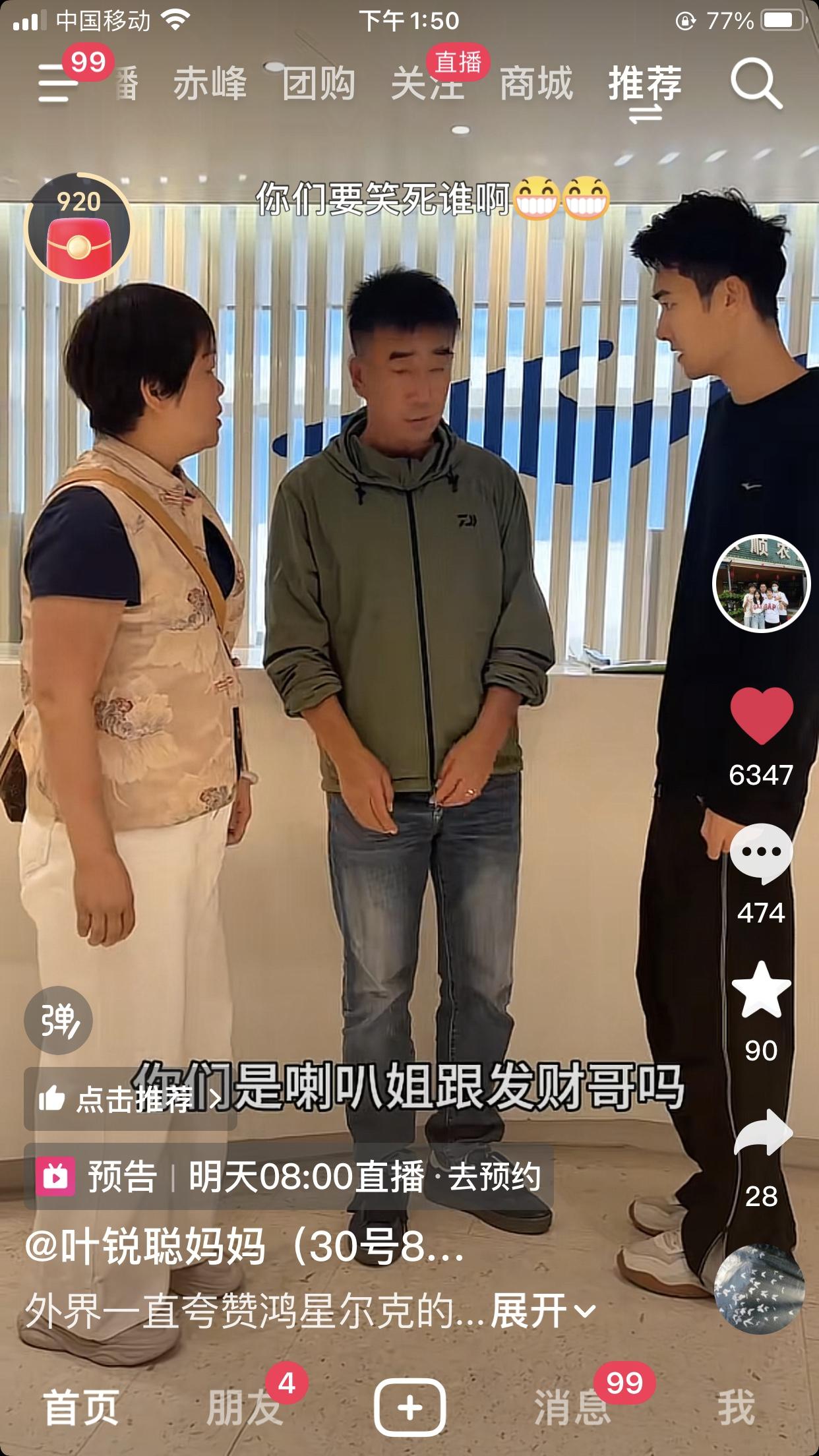 这边聪爸表白:老婆加油,家里边有我呢。那边鸿星尔克总部大喇叭和发财弟又说起了相声