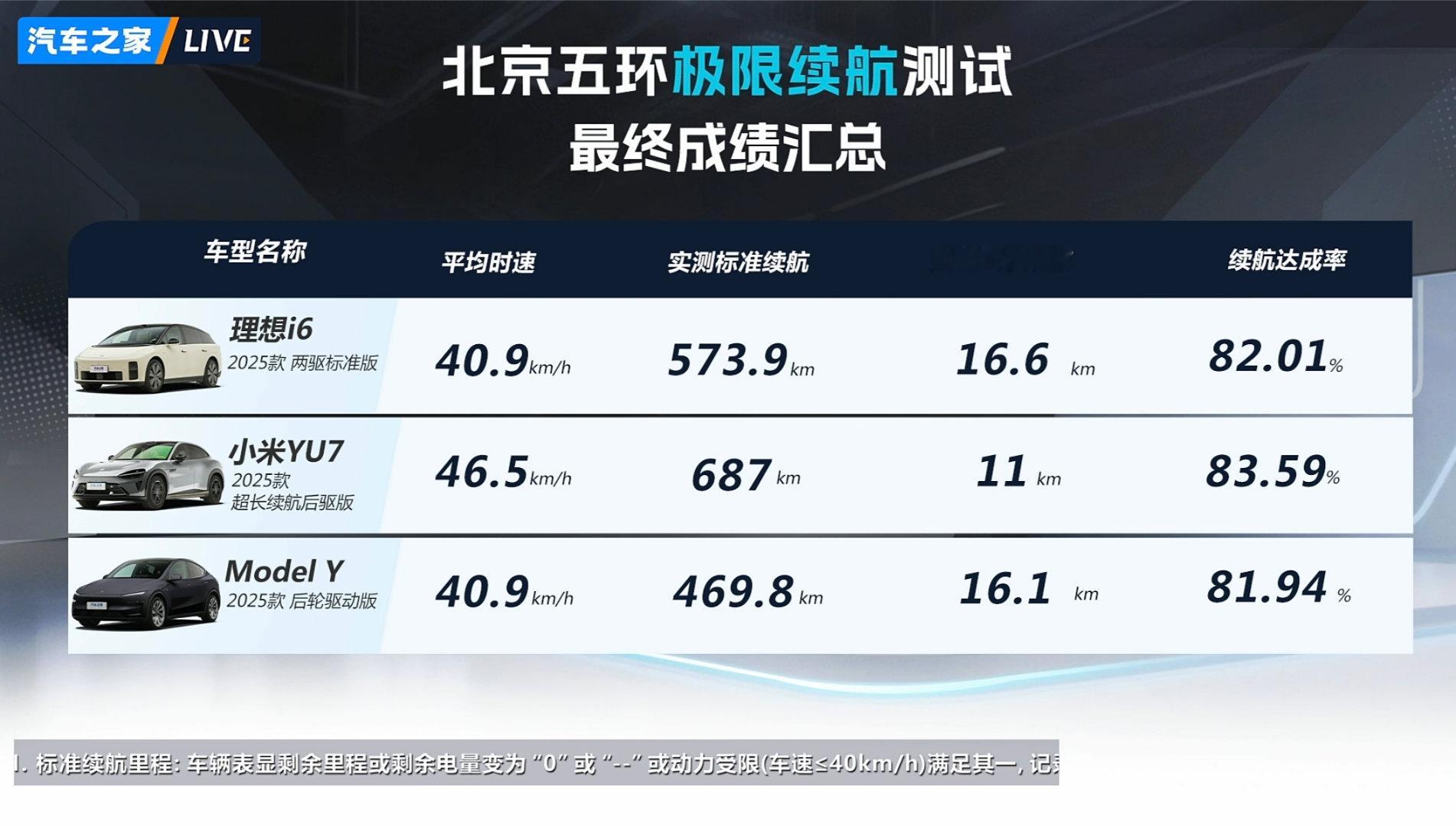 但有一点,测试结果是客观的,小米YU7就是续航里程和达成率的双第一。