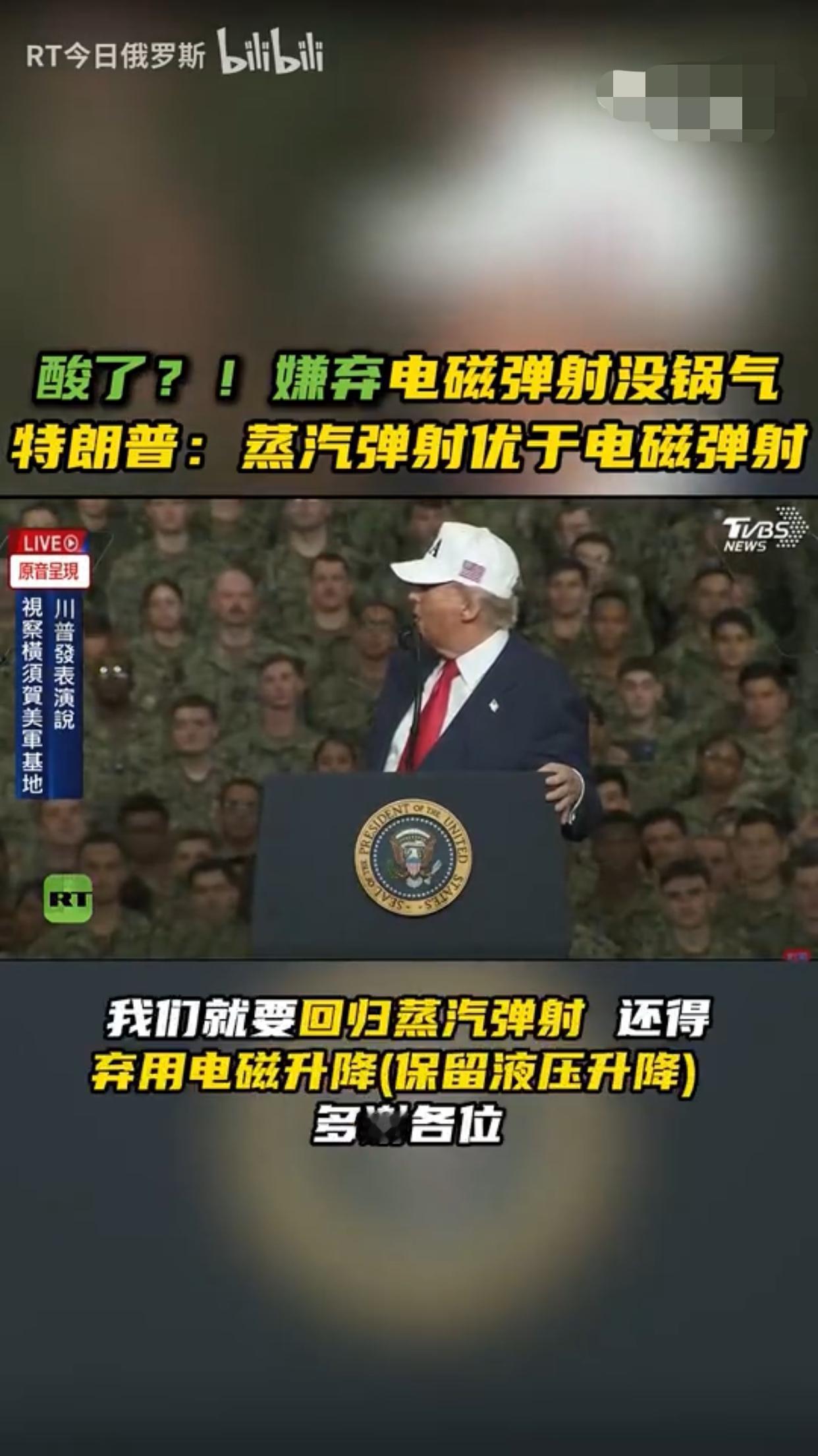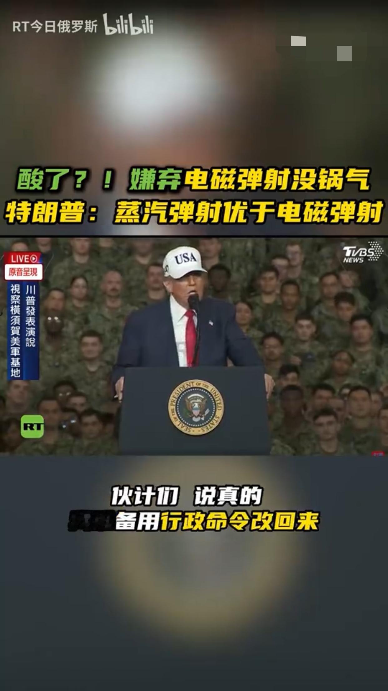 特朗普表示要用行政命令让美国海军的福特号航母上的电磁弹射换回蒸汽弹射,理由是美国的电磁弹射系统成本太高,故障频发,修理起来费劲。 特朗普:“我要知道弹射器,到底是电磁弹射好还是蒸汽弹射好?” 美国大兵:“必须是蒸汽弹射好!” 特朗普:“说真的,我准备下订单了哈,他们花了几十亿美金去搞那些愚蠢的电磁弹射,出故障了还得从麻省理工找最顶尖的专家坐飞机来修,太荒唐了,人家说蒸汽弹射用锤子焊枪就能修好,效果一点都不差,甚至更好,‘我最爱看那白色蒸汽从甲板喷涌而出的壮观场面‘,电磁弹射哪有这种视觉效果,我们福特号用了电磁弹射,结果成本严重超支,但愿它能用吧,但我就是喜欢蒸汽,我们要回归蒸汽弹射,他们花了9.93亿美金来折腾电磁弹射,而蒸汽弹射50年来一直在完美运行,伙伴们、说真的,我准备用行政命令改回来,既然有现成的完美方案,我们就要回归蒸汽弹射,还得弃用电磁升降,保留液压升降,多谢各位!”