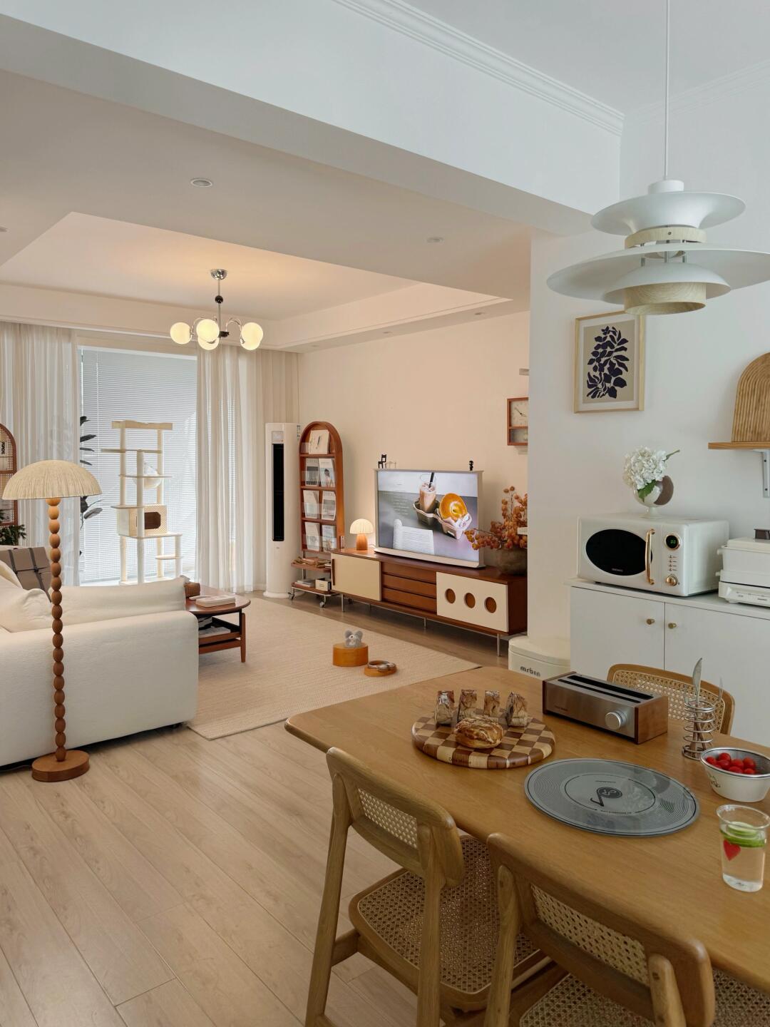 在小城市拥有一个自己的小房子,简单硬装,靠软装布置出了我喜欢的家。压力不大,仿佛提前过上了躺平的生活~ 一个人住,有猫咪陪伴也并不孤独,生活平淡却幸福,周末背上背包去周边旅旅游~ 工作日每天下班只想冲回家,打开落地灯和ins魔豆吊灯,灯光让家温馨又治愈~ 我的小家谈不上高级,但住起来还挺舒服,普通人拥有这样的小房子就很知足。 -