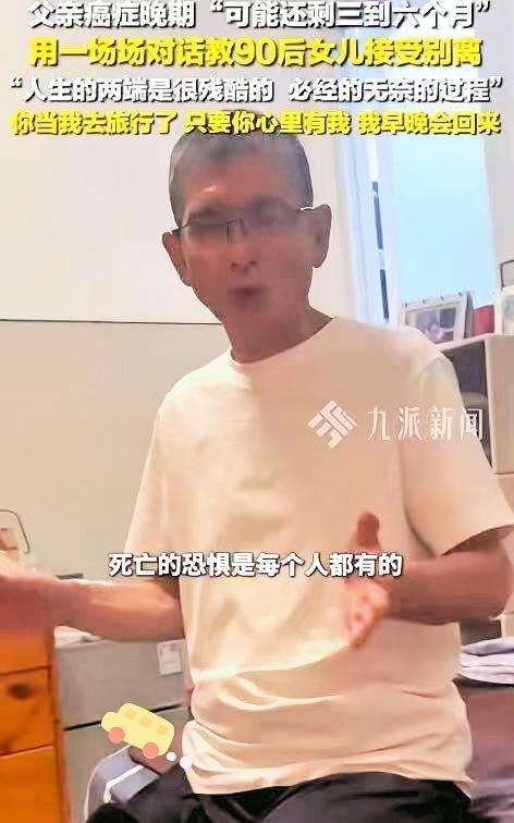 泪目了!上海,一男子确诊为胰腺癌晚期,医生说生命所剩无几。听到这个消息,男子却平静地对女儿说,自己就要离开,现在告诉你是为了等我走后,你不会一时接受不了。死亡是人生的必经之路,希望你可以坚强,想爸爸时就抬头看看,自己永远在她身边,女儿听完后眼泪不自觉流了下来。 “能平静的和孩子讲这些,真的是让人心里难受,又觉得大哥真的有勇气...”网友们也对大哥十分的佩服! 最近,上海的一位90后女孩分享了一段她和父亲对话的视频,视频内容让不少网友感到触动。 女孩的父亲被诊断为胰腺癌晚期,医生告知他剩下的时间大约只有半年。 面对这个消息,父亲却异常平静,他对女儿说:“死亡就像坐公交车,早晚都得下车,没必要太伤心。”他还温和地对女儿说:“你可以当我去旅行了。”尽管如此安慰,女孩还是忍不住泪流满面,无法停止哭泣。 那是父亲确诊癌症后的两周,父亲主动开口和女儿谈起生死。 他告诉她,自己的肝脏和淋巴已经转移了,死亡对他来说只是生命的自然过程,就像草木枯萎一样,没什么可怕的。 他安慰女儿,说死亡是无法避免的,最重要的是她要学会放下,别为自己无法改变的事情感到过多的痛苦,记住他就好。 女孩在视频中回忆,刚开始听到这些话时,她完全崩溃了,忍不住大哭。 但出乎她意料的是,父亲反而是安慰她的那一个。 老人说:“我们的身体是借来的,活一辈子,什么也带不走。”他还提到,如果女儿过于伤心,自己也会更加痛苦。这些话让她在心里明白了很多,尽管父亲的身体日渐虚弱,但他的言语中充满了平静与宽慰。 这个视频分享后,许多人都表示自己在父母临终时也经历过类似的情景。 有些人回忆起自己和父母最后的告别,虽然心中充满悲伤,却也体会到亲人的宽容与释怀,仿佛在提醒自己,生命的结束是自然的事,不必过度悲伤。 这位父亲坦诚面对自己的病情,与许多家庭选择隐瞒事实的传统做法形成了鲜明对比,也引发了社会关于“生死教育”的深入讨论。 在网络上,很多人分享了自己没有与亲人好好告别的遗憾,这些故事也反映了社会对这种沟通方式的迫切需求。 越来越多的医院在尝试开设“谈死门诊”,一些学校也开始引入生命教育课程,这些变化表明,社会正在逐步意识到生死话题需要被更加开放和理性地讨论。 这场父亲与女儿的告别,似乎并不仅仅是一次情感的告别,更像是父亲为女儿铺设的一条未来之路。他的告别不仅是生命的结束,更是一种精神的延续。
