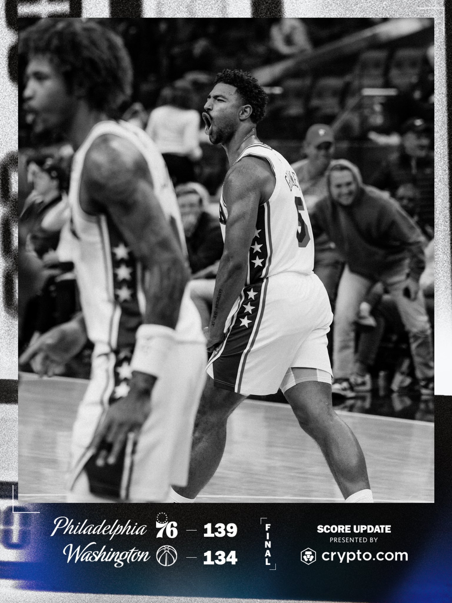 全场比赛结束:76人队背靠背客场加时139-134险胜奇才队,球队取得四连胜!马克西39分10助攻,恩比德25分7篮板5助攻,格兰姆斯23分7篮板3抢断,埃奇库姆14分6篮板4助攻,乌布雷17分11篮板,博纳2分5篮板5封盖![围观]