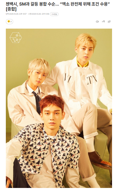 CBX方面表示:想回EXO活动,全面接受SM的要求,且为了完整体活动,12月三人日程已全部空出来,正在通过法律代理人等待SM的最终答复