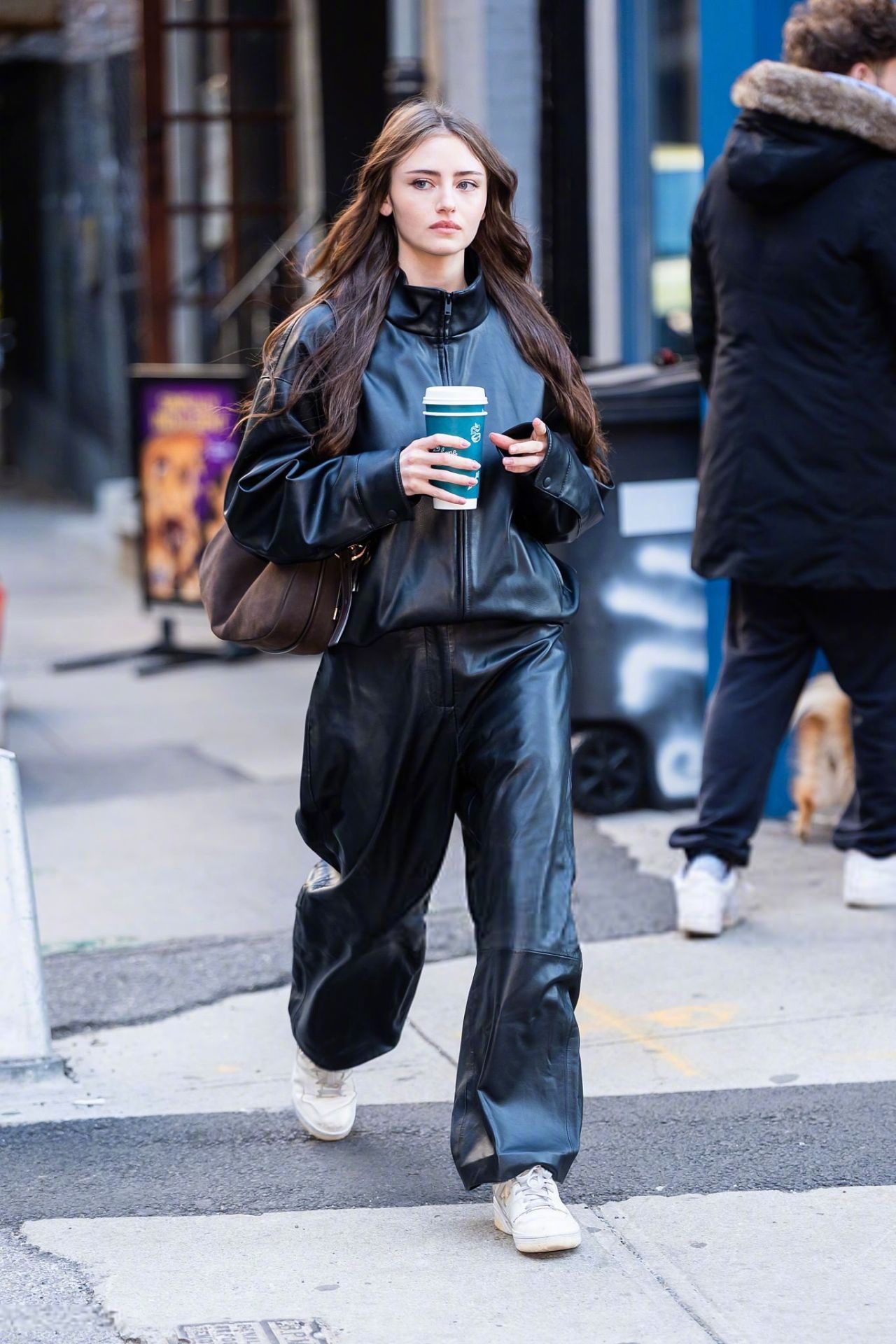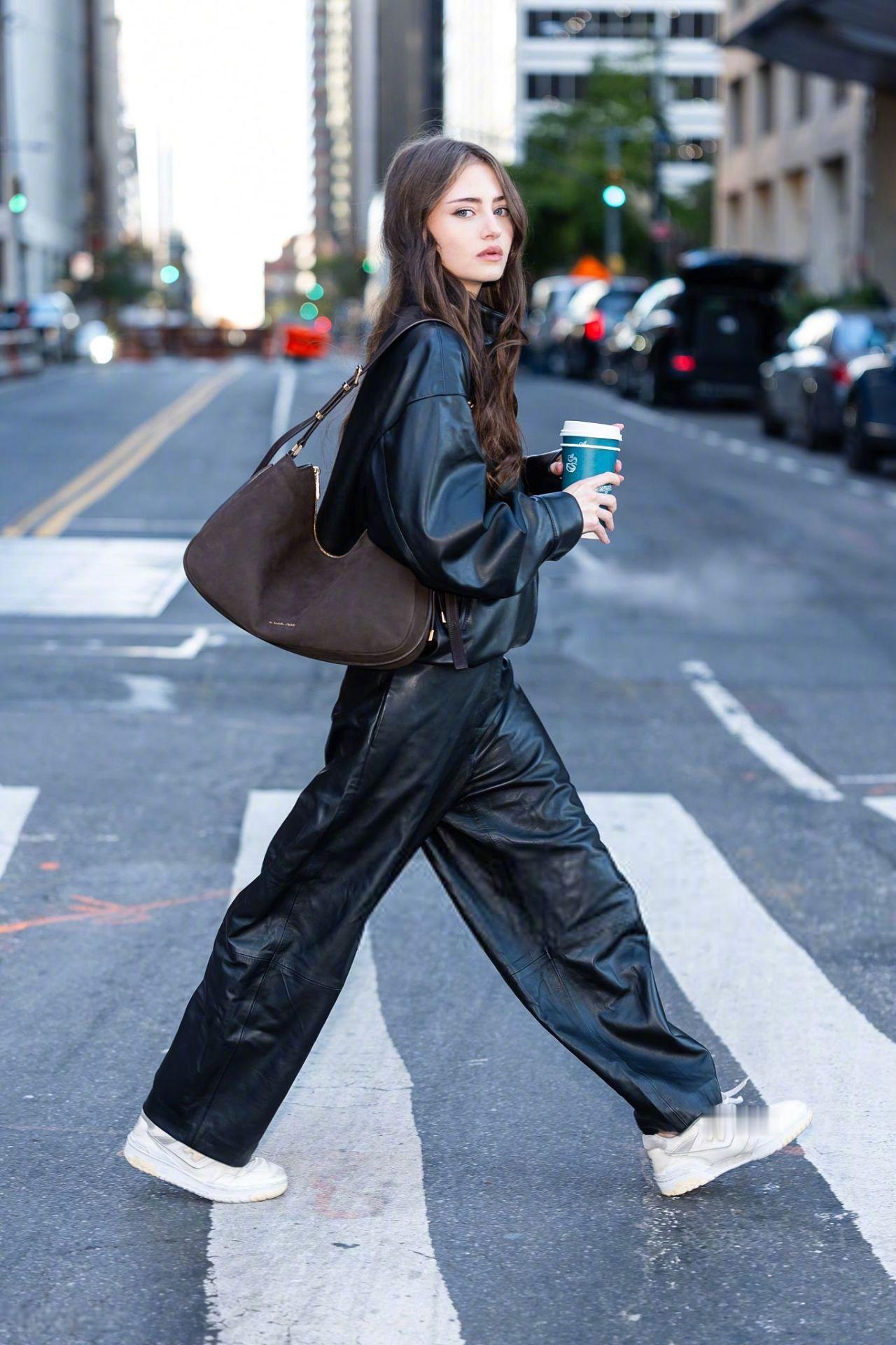 星二代莱妮·克鲁姆现身纽约市金融区的街拍。一身黑色皮衣很酷,肩背的好像是Michael Kors单肩包。她现在在纽约的一所大学学习室内设计,小女孩日常好像很喜欢穿黑色。米拉服饰解析