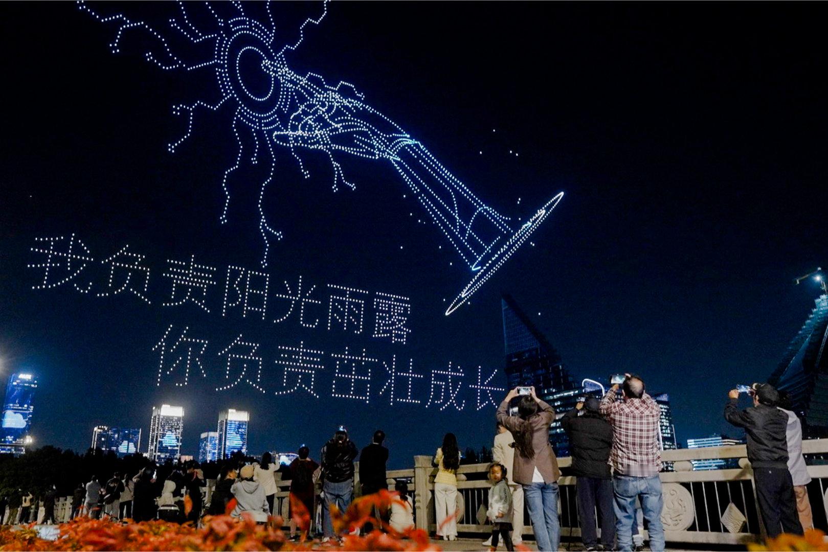 浙江人的赛博浪漫藏不住了未来科技城千架无人机秀出中轴线