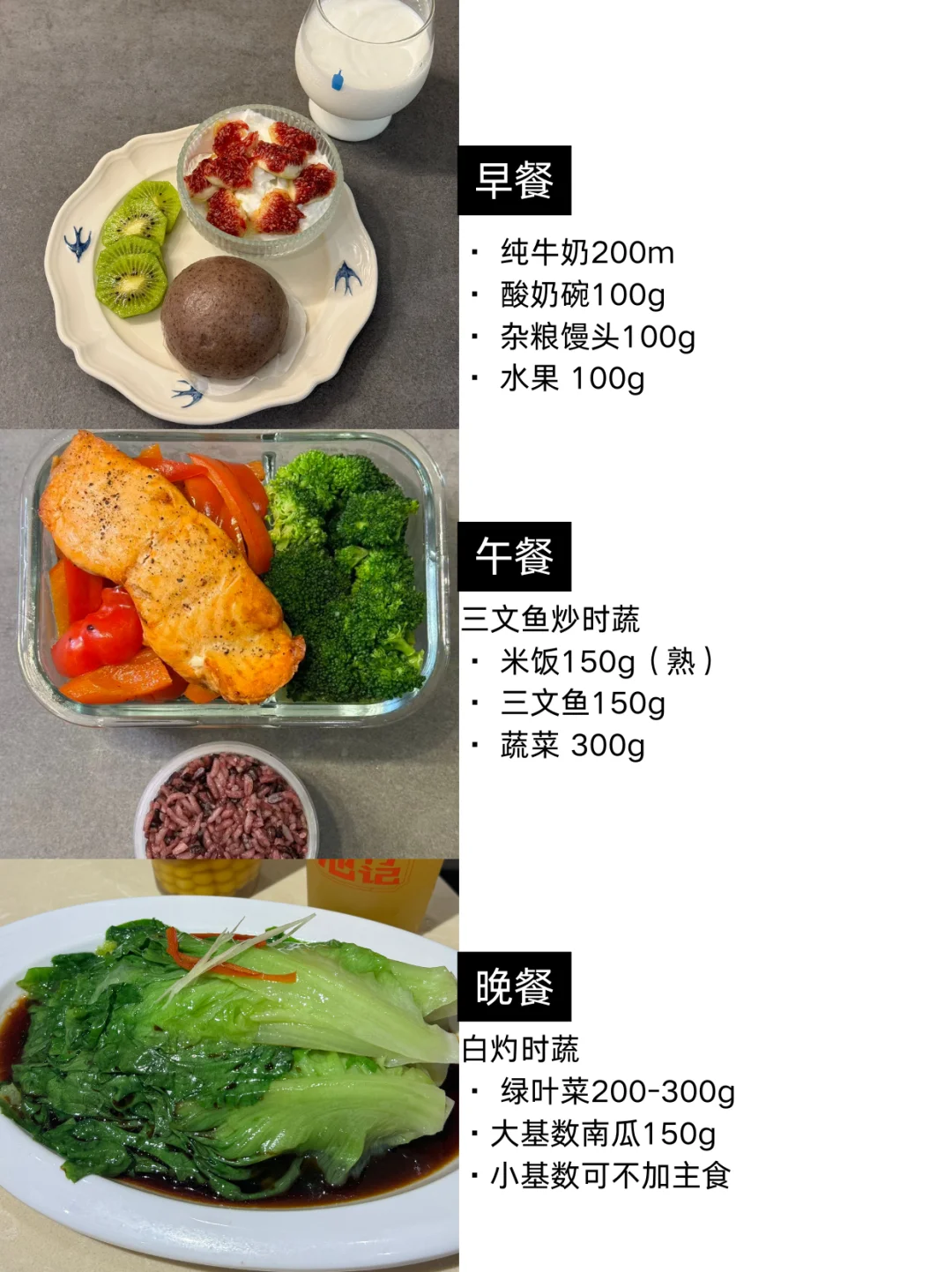身高:172cm 体重:65kg-53kg 体脂:28%-18% - 天气凉了姐妹们食欲开始不稳定了有没有 最近吃胖了的姐妹们👀这里 答应姐妹们的食谱来了! 👀今天的食谱更适合小基数姐妹 大基数晚餐酌情加碳水就好 姨妈期姐妹参考大基数的来 - 注意事项: ✅少油炒就好别总白水煮一点没食欲 ✅时刻保温多喝热水很重要 ✅调料选择干净的黑胡椒盐生抽这些 ✅午餐吃精粮,大米这些,早晚吃粗粮混合这来 ✅蔬菜绿叶蔬菜都能吃,清炒白灼都可以 ✅晚餐别走极端不吃这些,除非你一辈子不吃 - 运动想做就做不想做每天吃完了走一走都好! 一起加油👏🏼期待你们的好消息