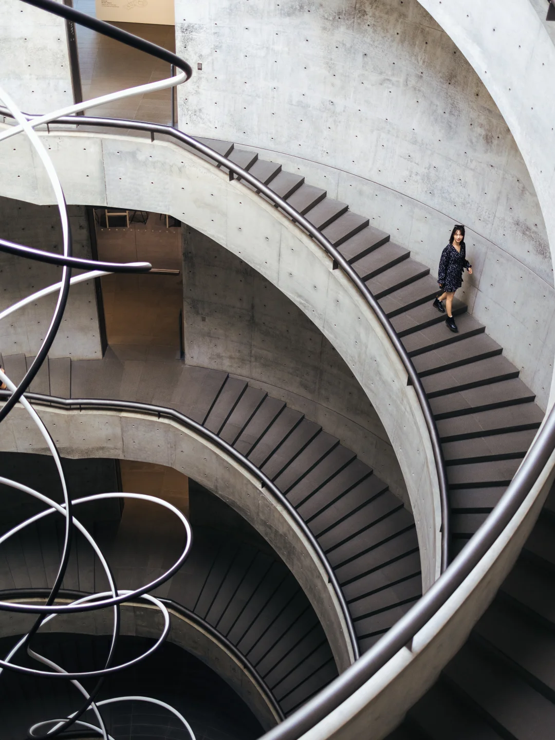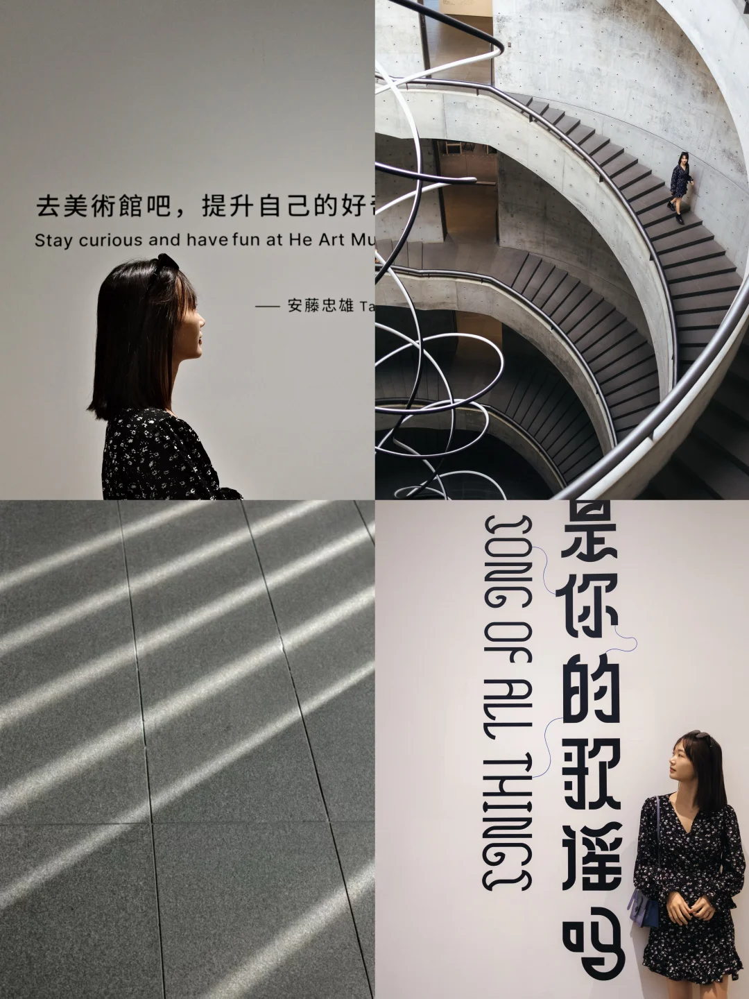 安藤忠雄以双螺旋楼梯筑就光影诗篇 清水混凝土的几何切割,让艺术与建筑在此悄然对话。 馆藏从近现代至当代,岭南画派的笔墨与先锋思潮在此交织。 ——于顺德,遇见和美。