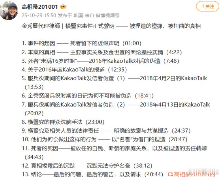 金秀贤律师声明 金秀贤律师发了43分钟的声明,还有中文配音[震惊]