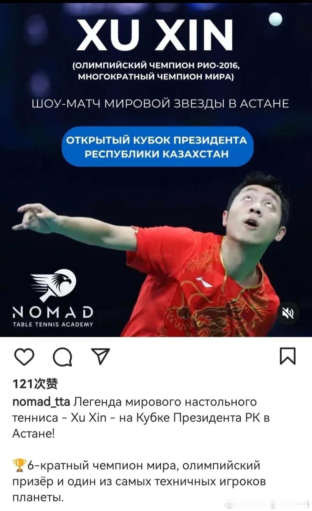 托卡耶夫总统亲自邀请我国著名乒乓球运动员、奥运冠军许昕作为特邀嘉宾,出席哈萨克斯坦共和国总统杯乒乓球公开赛10月29日决赛及颁奖仪式
