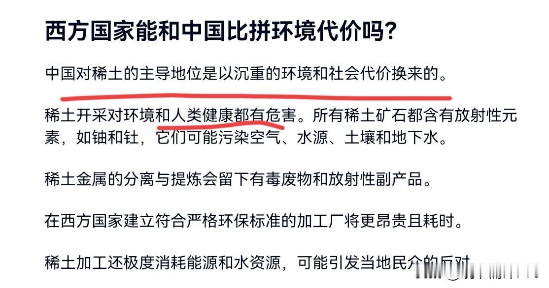 明明是需要中国的稀土,没想到德媒却转过头来对我们进行点名批评!10月29日,德媒刊文声称,中国在稀土供应链的每个环节都占据主导地位,其背后是“不惜”环境污染和劳工健康的代价,以及长期形成的产业生态。中国对稀土的主导地位是以“沉重的”环境和社会代价换来的。因为,稀土开采对环境和人类健康都有危害。 德媒表示,所有稀土矿石都含有放射性元素,如铀和钍,它们可能污染空气、水源、土壤和地下水。而稀土金属的分离与提炼会留下有毒废物和放射性副产品。德媒表示,要在稀土领域竞争,仅仅比赛让自己国家的人民承受经济痛苦还不够,还要看谁能承受更多的环境破坏和人类健康的代价,而西方显然不具备那样的优势。 很显然,西方国家明明是要稀土,结果呢?结果是德媒却批评我们称,我们是以环境,劳工健康等为代价获取了产业优势。不得不说,德媒对中国的刻板印象还停留在十几年前。事实上,如果说十几年前,我们国家的稀土产业还处于粗放管理生产的状况,那么现在我们早已经实现了绿色无污染的生产。我们就不知道德媒是对我们的产业状况不清楚,还是故意带着偏见看待我们。 再者,我们明显看出来了,德媒似乎是以传统采矿业的标准看待稀土生产,而根本不明白稀土产业是一个工艺技术极为复杂的产业。不管是稀土设备的生产,还是稀土分离的溶剂萃取技术,精炼技术,我们都形成了对西方国家的技术壁垒。西方国家一方面要我们的稀土,一方面又指责我们的环境保护,这是既双标,又充满偏见。很显然,这样的歪曲报道,不会影响我们的产业优势。如果德媒认为西方国家很快能够实现稀土供应的独立自主,西方国家不妨试试看。