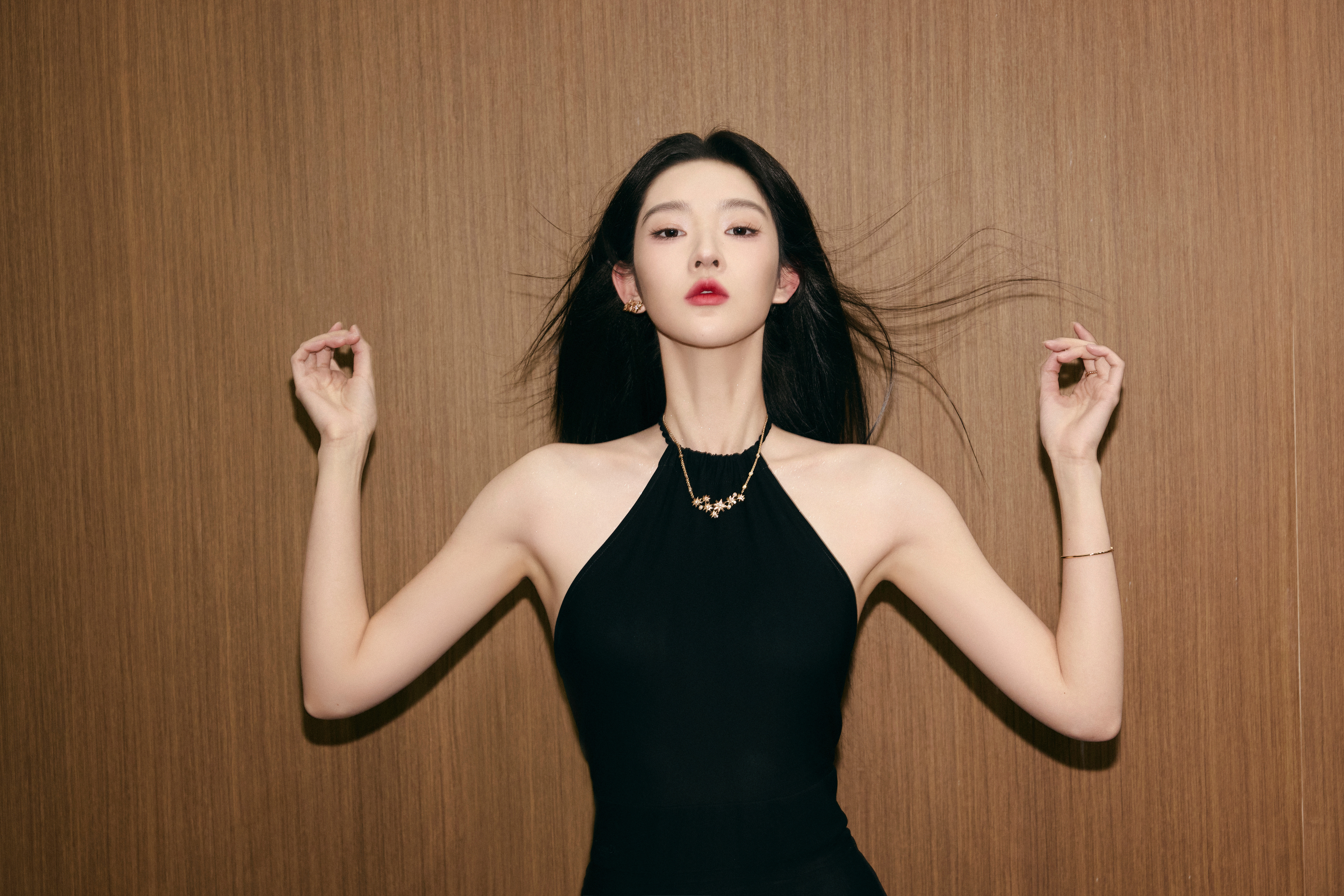 刘亦菲把死亡玫粉穿出了定制款的感觉,这种颜色普通人穿上分分钟黑三度,她居然能穿出