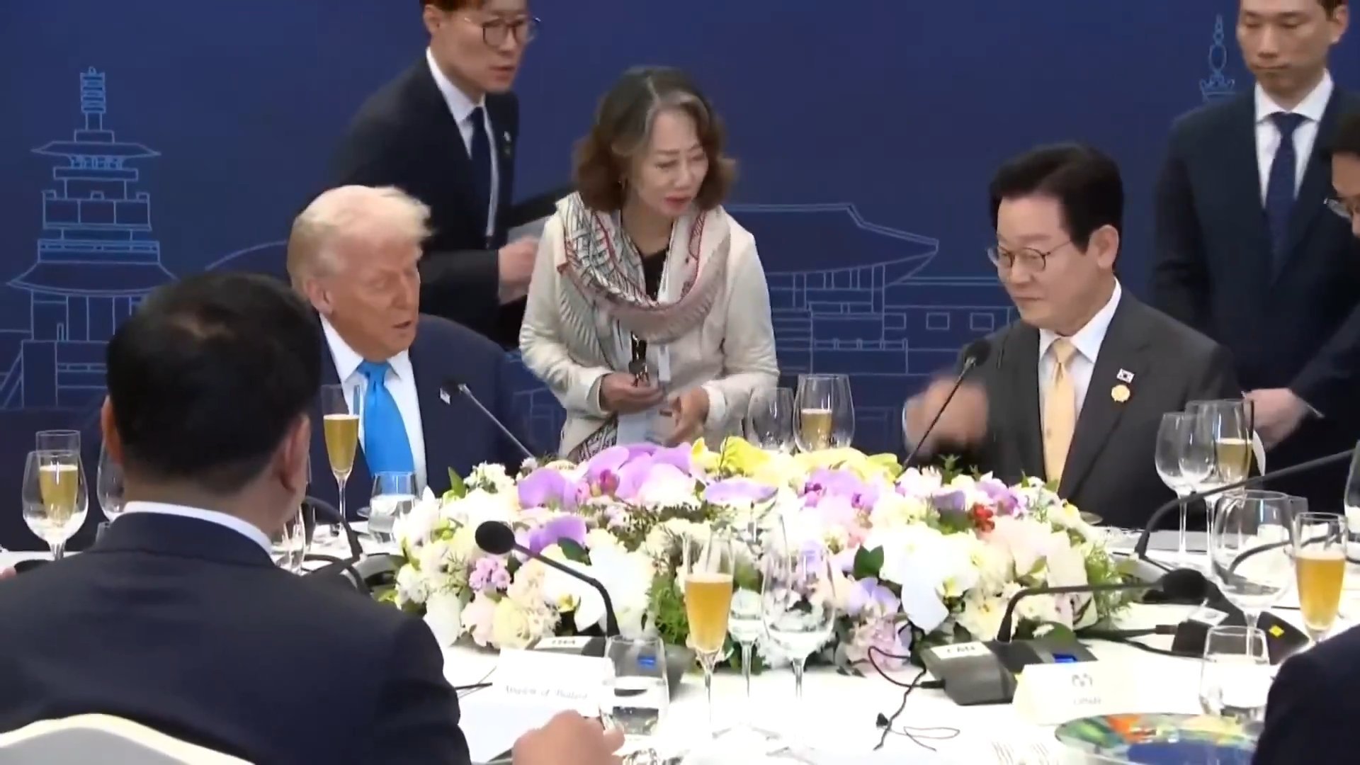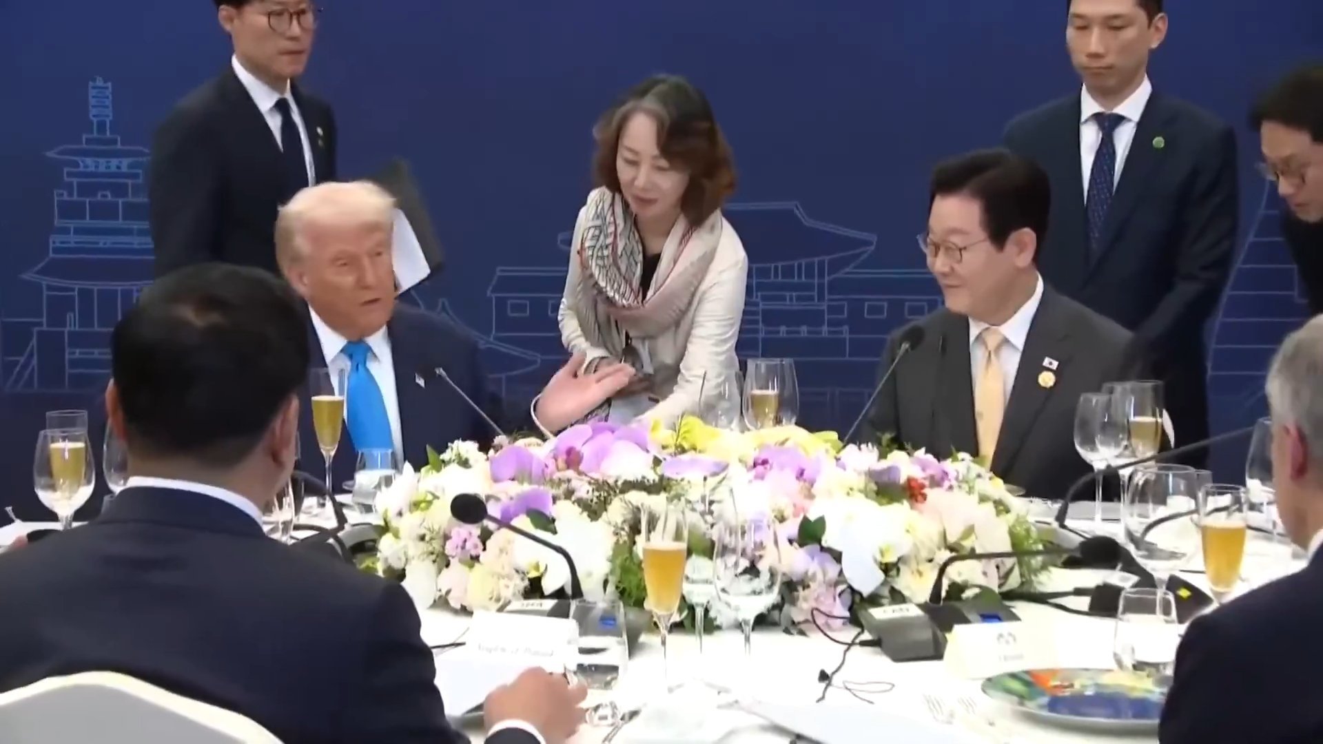 特朗普访问韩国 绿毛女又在担任特朗普的翻译