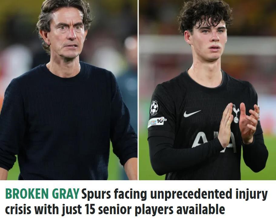 热刺格雷受伤,一线队就剩15人了。原本就遭遇到伤病打击的热刺队,中后场多面手格雷又受伤了,一线队现在就剩15个人可以给弗兰克使用了。 太阳报热刺跟队记者Tom Barclay透露,格雷最初是在上周与摩纳哥0-0战平的欧冠比赛中,察觉到小腿伤势这个问题的。 周日,在对阵埃弗顿的比赛热身中,格雷的该部位也出现了不适。格雷在当地时间周一接受了检查,结果才明确了伤情的严重程度。Tom Barclay透露,格雷需要休息至少一个月。