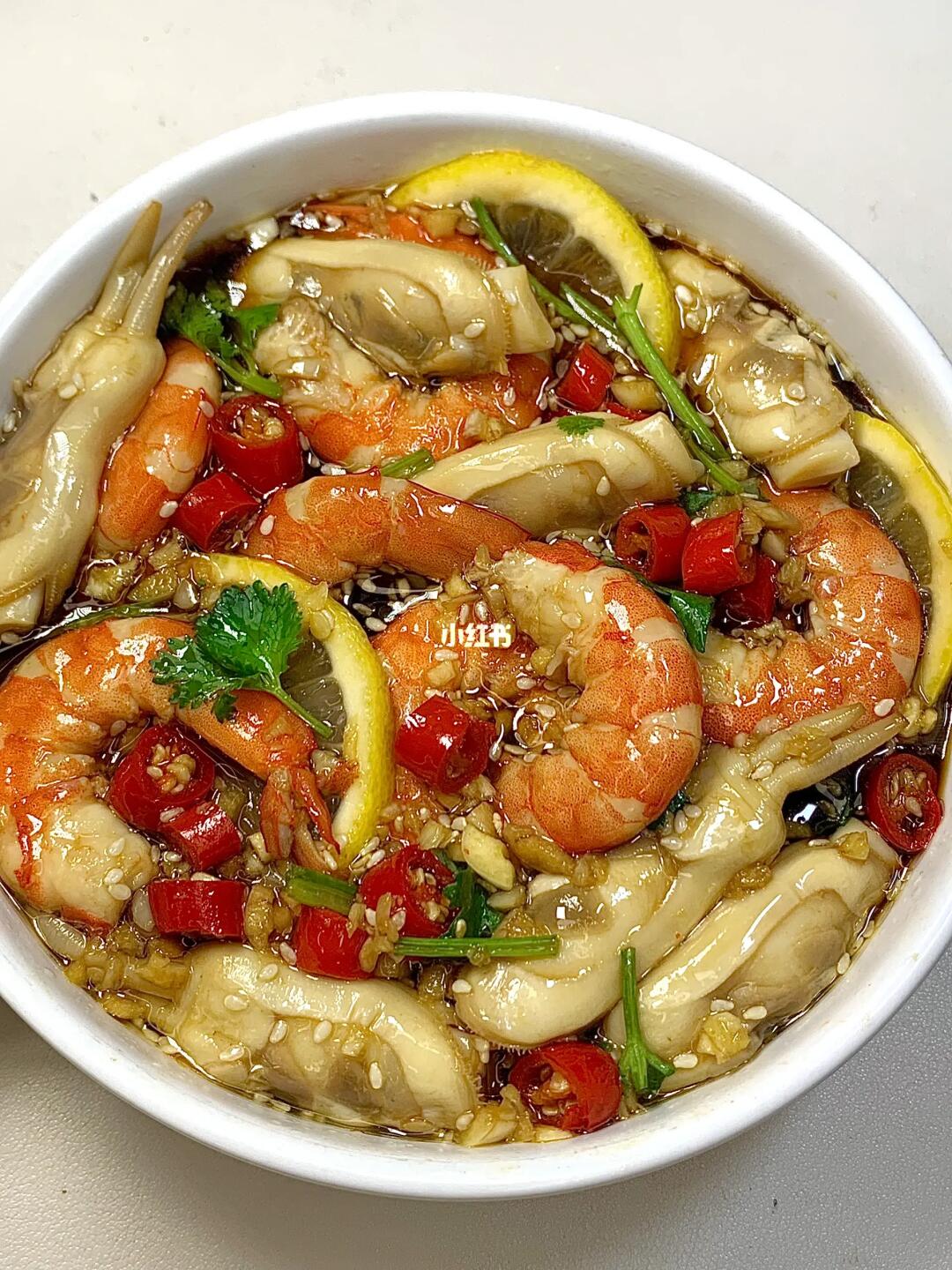 清爽开胃!真的太太好吃了啊啊😂。。q弹的虾仁➕蛏子鲜嫩!口感无敌!再配上我的灵魂捞汁!入口鲜甜!带着海鲜的鲜美香气[赞R] 还有柠檬的清新!鲜!香!辣!太过瘾了!!!关键热量也很低!有手就会!真的很简单~ 食材:鲜虾🦐 蛏子 海鲜冷泡汁 🫕做法:蛏子水开下锅烫1分钟捞起,大虾加姜料酒煮熟捞出 放凉剥壳 准备香菜蒜未、小米辣、柠檬、白芝麻、淋上冷泡汁,冷藏浸泡10分钟即🉑!!! 好吃到犯规!吃完还想用剩余的汤汁拌个面条!一点都不舍不得浪费[捂脸R] 连我妈都夸我好会做✌️
