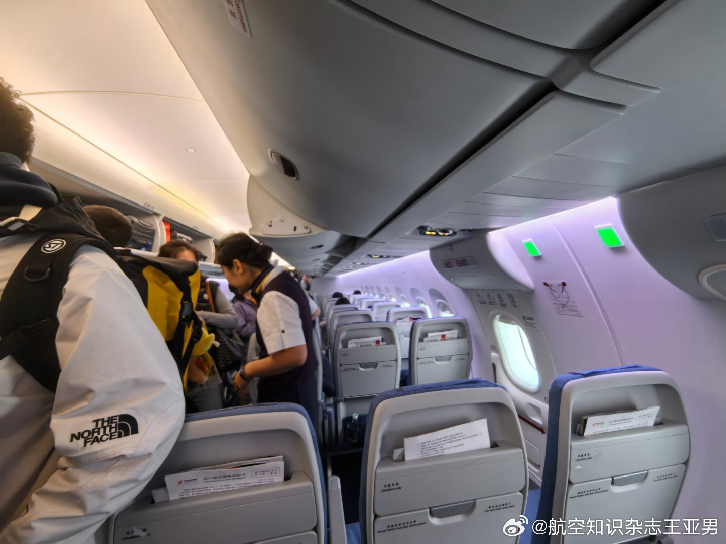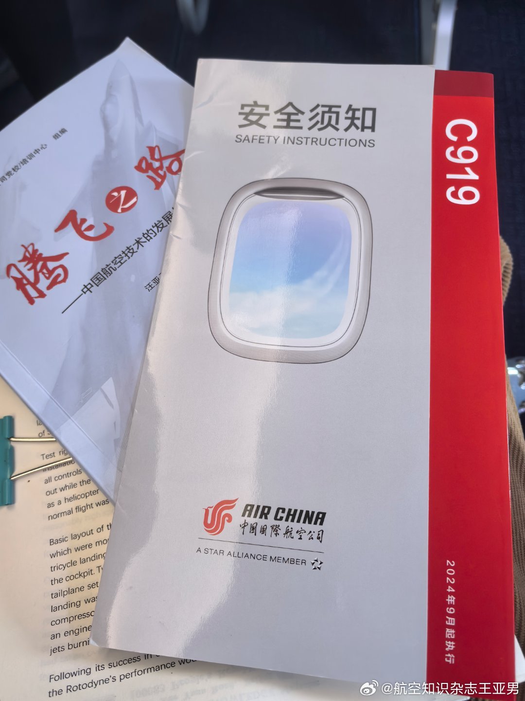 今天坐C919,第一次坐国产大客,内部清朗爽利,空间尺度更足,纤巧的座椅更拉满了宽阔感。那个红底上的C919几个字,是中国民机半个多世纪奋斗的结果。
