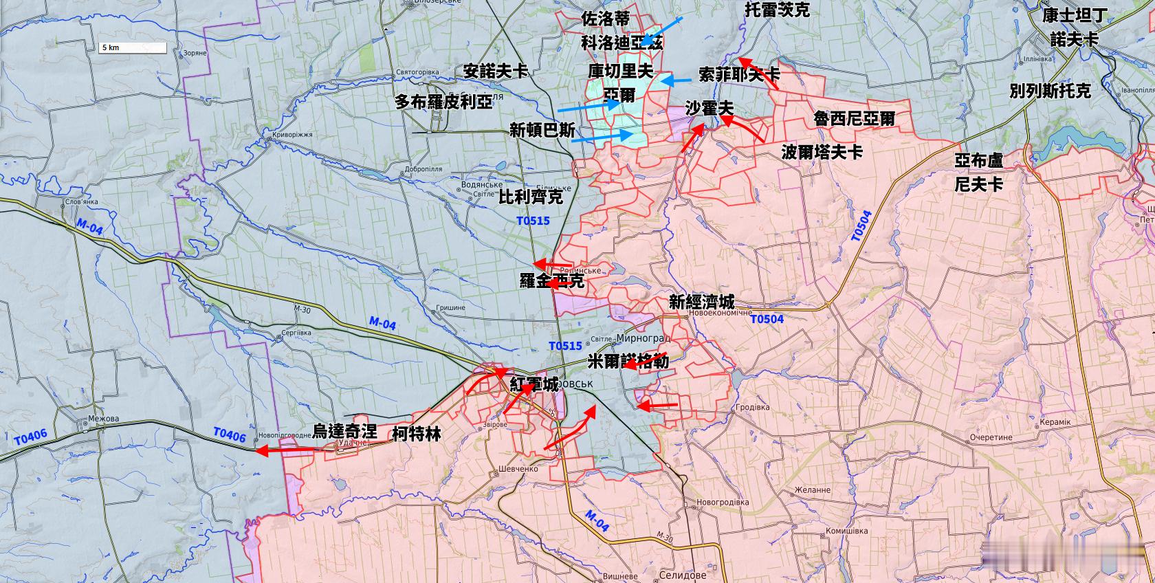 2. 俄軍持續在紅軍城城區取得進展,逐漸收小紅軍城-米爾諾格勒包圍圈。