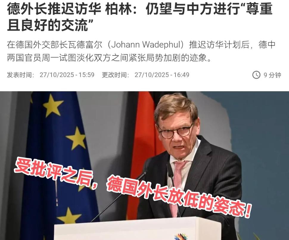 德国外长被“中断”访华之路后,德国国内各界“火力全开”!任何指责中国的行为都是愚蠢的做法!英国《金融时报》称这是默茨政府的超级外交灾难! 明眼人都能看出,这不是中方的刁难,而是德国方面先失了分寸——瓦德富尔此前一系列信口开河的不当言论,触碰了外交沟通的基本底线,中方要求其先纠正言论再访华,不过是坚守对等尊重的基本准则,可德国政府非但不反思,反而任性取消行程,这般操作难怪会引发国内各界“火力全开”的批评。 德国当下的经济处境本就不容乐观,却还在对华关系上自断后路,实在让人费解。 海关总署的数据显示,2024年德国对华出口总额同比下降9.7%,而中国作为德国最重要的贸易伙伴之一,这样的下滑幅度对本就增长乏力的德国经济来说,无疑是雪上加霜。 更讽刺的是,德国企业界用实际行动给出了和政府完全相反的答案,德国央行统计2024年上半年德国对华直接投资高达73亿欧元,创下历史新高,巴斯夫、宝马、大众等巨头纷纷加码在华布局,大众更是豪掷25亿欧元扩建合肥生产基地,奔驰与宝马联手在北京建设超级充电网络,这些企业心里门儿清,中国市场不是可有可无的选项,而是关乎全球竞争力的核心阵地。 有德国车企高管直言,想造汽车就必须进入中国,撤出中国就等于退出行业,这话戳破了所有“去风险”的虚伪说辞。 德国政府一边跟着欧盟和美国对中国指手画脚,一边却在承受着贸易保护主义的反噬。 这些年,从中国电动车到太阳能光伏产品,德国屡屡站在阻挠行列,可这样的操作并没有保护到所谓的“德国制造”,反而让自己陷入被动。 早年间德国Solarworld公司牵头推动欧盟对华光伏“双反”,结果不仅没能挽救自身困境,反而让欧洲损失了20多万个就业岗位,德国机械设备制造企业也因贸易摩擦订单锐减。 如今欧盟酝酿对华电动车加征关税,连德国政府自己都不得不出面反对,因为汽车行业占德国对华投资的近一半,中国市场的新能源转型浪潮,容不得德国车企有半点闪失。 更让人哭笑不得的是,德国抱着美国大腿想寻求庇护,却被美国狠狠“割了韭菜”,2025年3月特朗普政府宣布对进口汽车加征25%关税,4月又对欧盟商品全面征收20%关税,而美国是德国汽车最大的出口市场,占比达13.1%。 保时捷近三成销量、宝马近六分之一销量都依赖美国市场,这波关税直接让德国车企面临巨额利润损失,美国市场的84.4万辆德国产汽车和13.8万个就业岗位都岌岌可危。 抱着美国大腿没捞着好处,反而被狠狠薅了羊毛,这样的教训还不够深刻吗? 德国国内的有识之士早就看清了局势,36家在华德企联合向新政府提交建议书,明确指出对中国加大投入而非减少,警告“风险管理不能简化为缩减对华业务”。 德国工业联合会专家也直言,将中国视为“系统性对手”的政治立场,正在与企业现实脱节。 德国“桌面简报”网站的文章更是点破关键,取消访华不仅是外交失误,更标志着德国对华政策没了方向。 反观其他欧洲国家,法国马克龙政府虽然也有摇摆,但至少懂得“战略对冲”的道理,10月中旬还派总统外事顾问博纳来华与王毅外长对话。 即便有分歧也保持沟通渠道畅通,而德国政府却连这点灵活性都没有,一根筋地跟着美欧的错误节奏走,既没有B计划也没有C计划,硬生生错失与中国深化合作的良机。 要知道,中德合作从来都不是单方面的施舍,而是互利共赢的双向奔赴。 中国是德国汽车、化工、机械设备等核心产业的重要市场,德国企业界70%的车企都通过与中国伙伴建立战略合作实现创新,中国的产业链完整度、市场活力和创新能力,都是德国难以在其他地方找到替代的。 德国联邦经济发展和对外贸易协会主席米夏埃尔・舒曼说得明白,从中国撤资和开展对抗不符合德国实际利益,企业界的理性判断已经给出了答案。 可德国政府却被阵营化思维绑架,无视经济规律和企业诉求,在需要与中国沟通协作的时候反而横加指责,这样的做法难怪被国内舆论批为“愚蠢”。 德国政府副发言人迈尔事后表态称推迟访华不会有重大影响,这番自欺欺人的说法根本站不住脚。 外交的核心是解决问题而非制造矛盾,尊重是沟通的前提,瓦德富尔若不能纠正不当言论,即便强行访华也难以取得实质成果。 如今全球经济复苏乏力,德国面临出口停滞、产业转型的多重压力,本应主动修复对华关系,借助中国市场的动力摆脱困境,可默茨政府却在错误的道路上越走越远。 德国真该好好反思,是继续抱着意识形态偏见对中国指手画脚,还是放下身段正视自身需求,用灵活务实的外交手段重建互信,毕竟在残酷的经济现实面前,任何脱离实际的政治操弄,最终只会让自己付出沉重代价。
