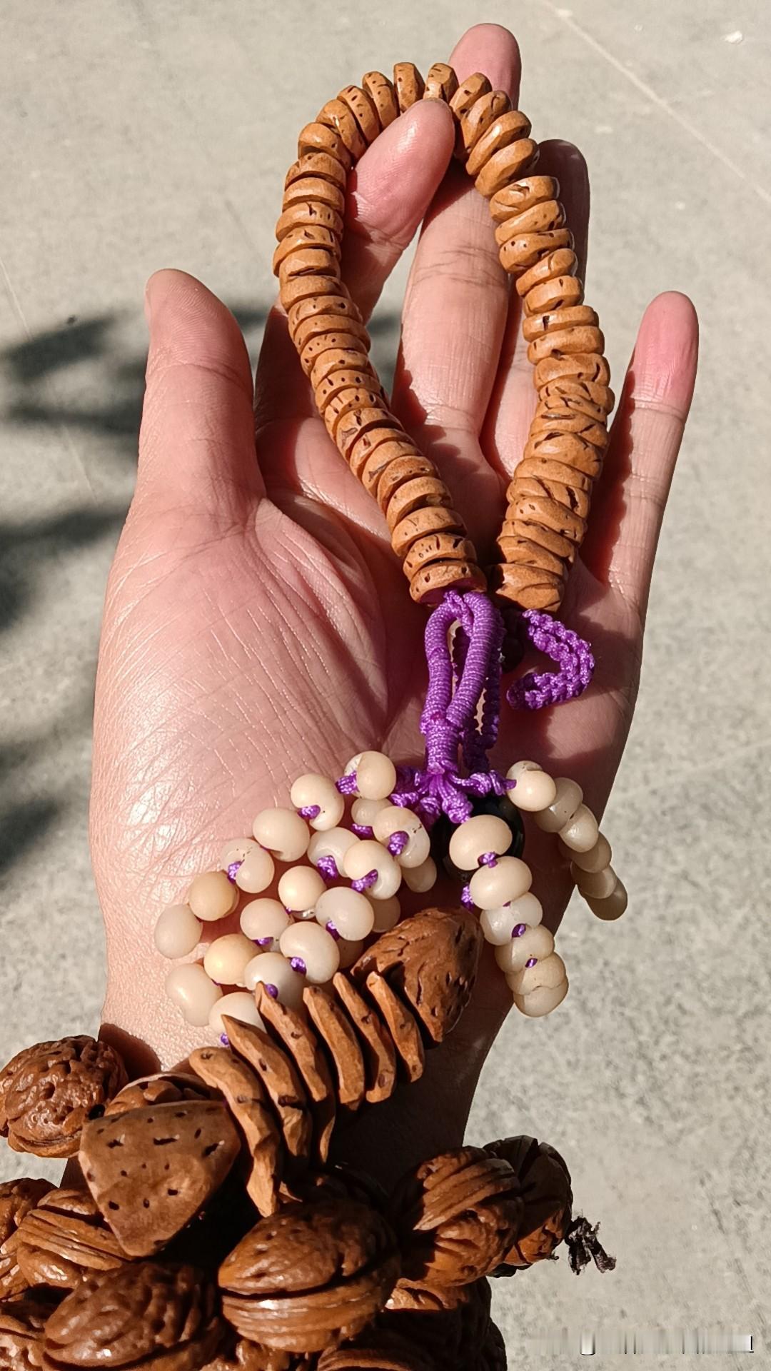 这个也好看,蟠桃核简单串成有两年多,颜色也变深许多。