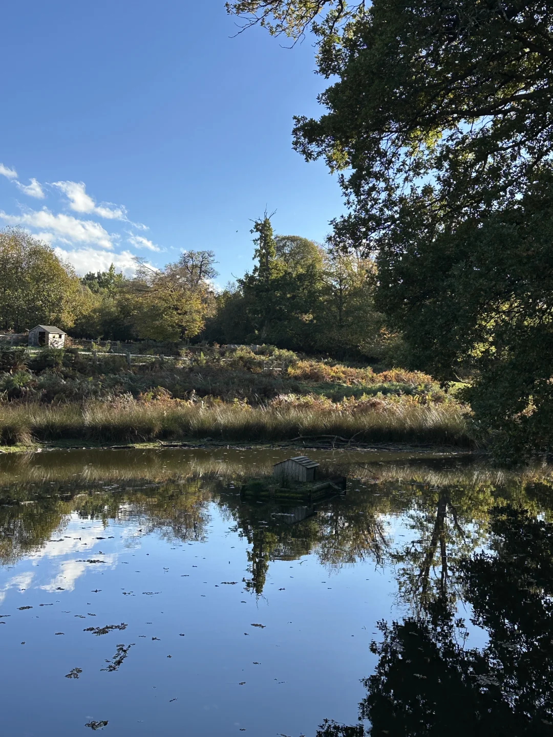 公园地势有变化,可以爬坡,过桥,坐池塘边发呆…很有趣!边走边看色彩多变的秋叶,从绿到黄到火红,深吸一口清冽的空气,踩着落叶,捡捡落下的栗子和松果,心情大好!Knole Park有鹿园,这次也有幸看到了4头小鹿(p3)远距离欣赏了一下它们悠闲吃草的样子☺️