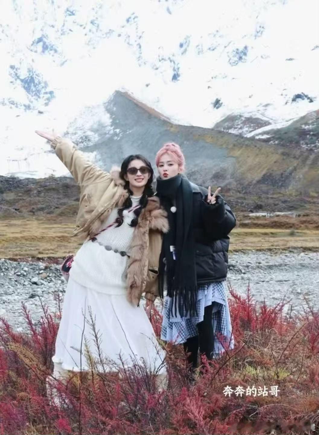 白鹿王楚然雪山下合照好萌王楚然白鹿两个人合照也太可爱了吧!!!!软萌小蛋