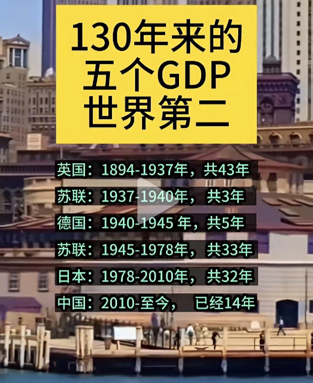 前5个曾经GDP世界第二的国家,不但均没有超越美国,反而被咱们遥遥领先的超越了。