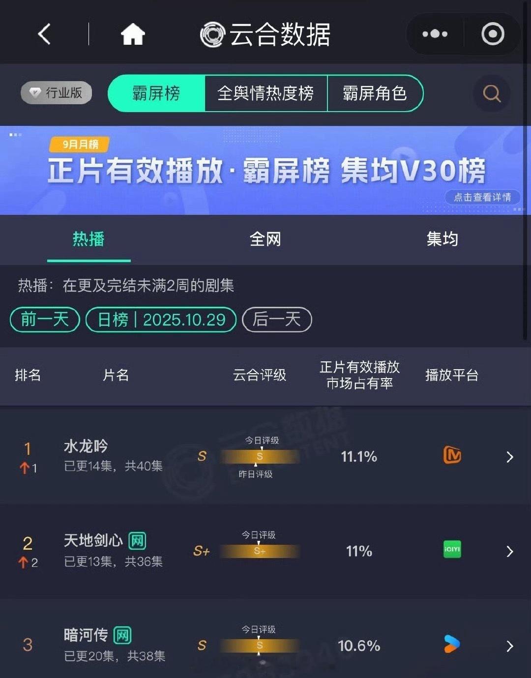罗云熙水龙吟11.1%,在🥭这个平台夺冠,成绩不错