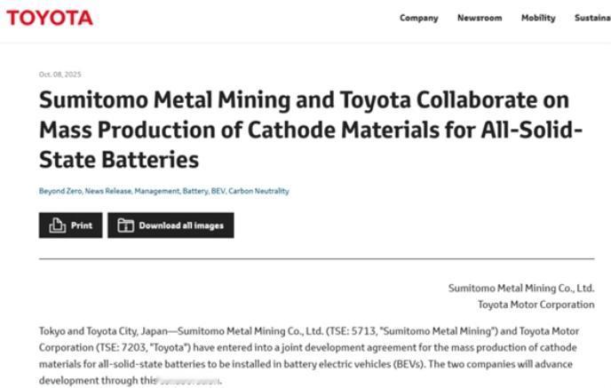 10月30日消息,丰田计划于2028年前将固态电池(SSB)技术应用于量产车型,