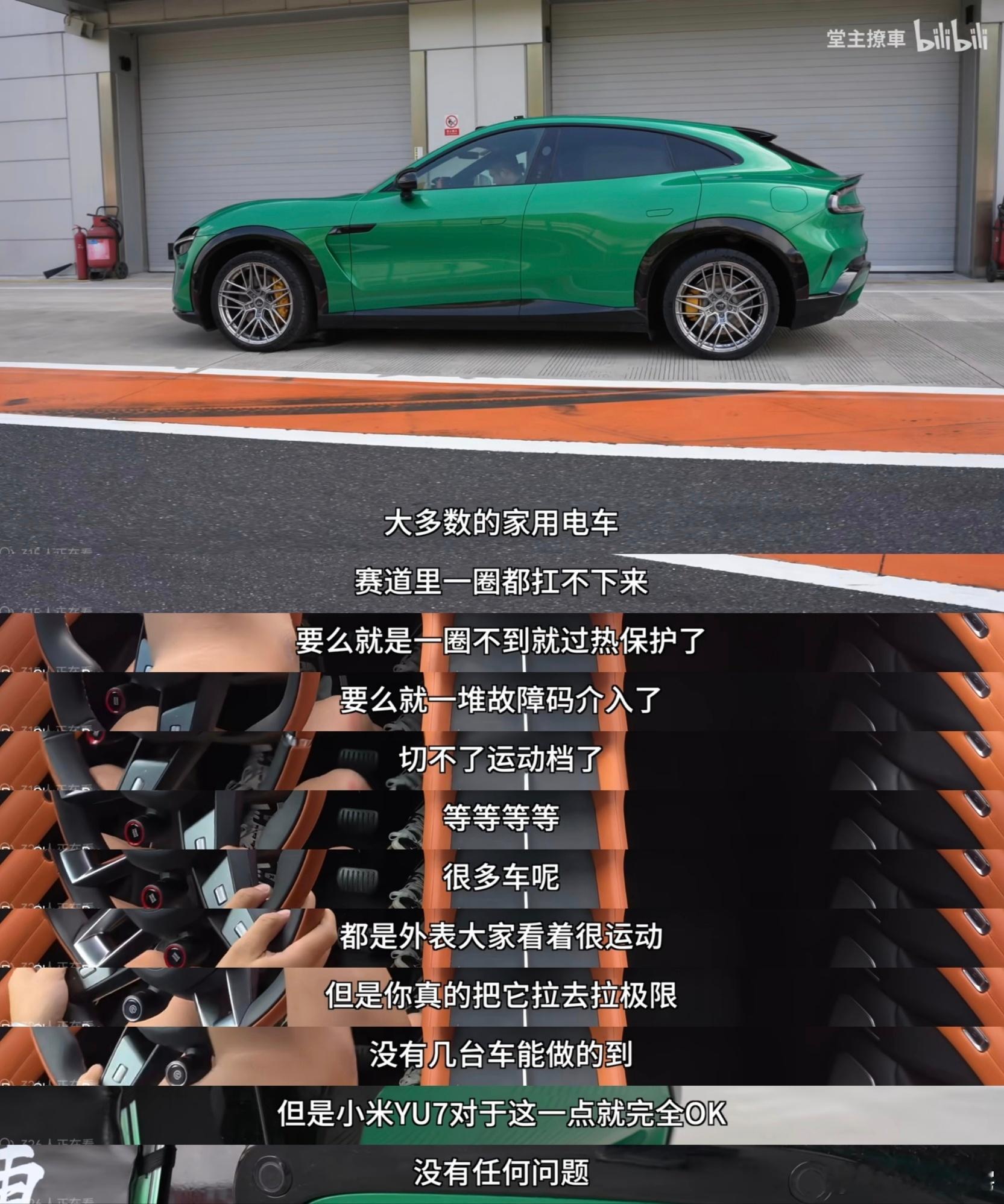 堂主用改装胎跑出的圈速,比官方原厂成绩还快了两秒多,甚至超越了一些经典燃油性能车,可见YU7极其扎实的机械底子和散热能力。一台沉重的家用SUV能在赛道上连续冲刺而刹车不衰减、电池不过热,这本身就证明了它的三电系统和底盘调校不是样子货,而是经过了极限工况验证的硬核工程。这比单纯宣传零百加速要更有说服力。
