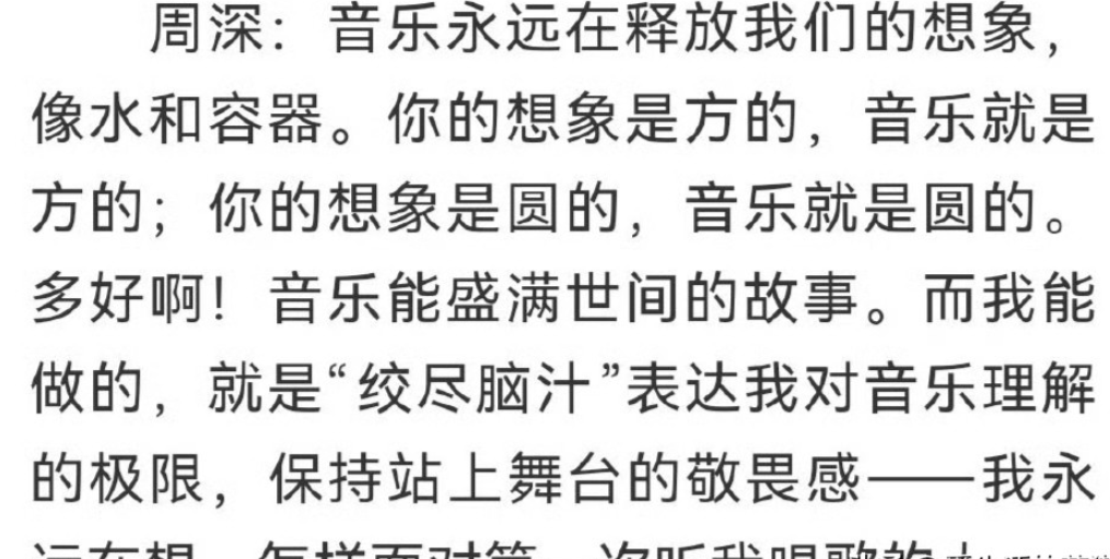 🌟深深在《人民日报》专访中有这样一段话真是越琢磨越有味道! 他把音乐比作“水和