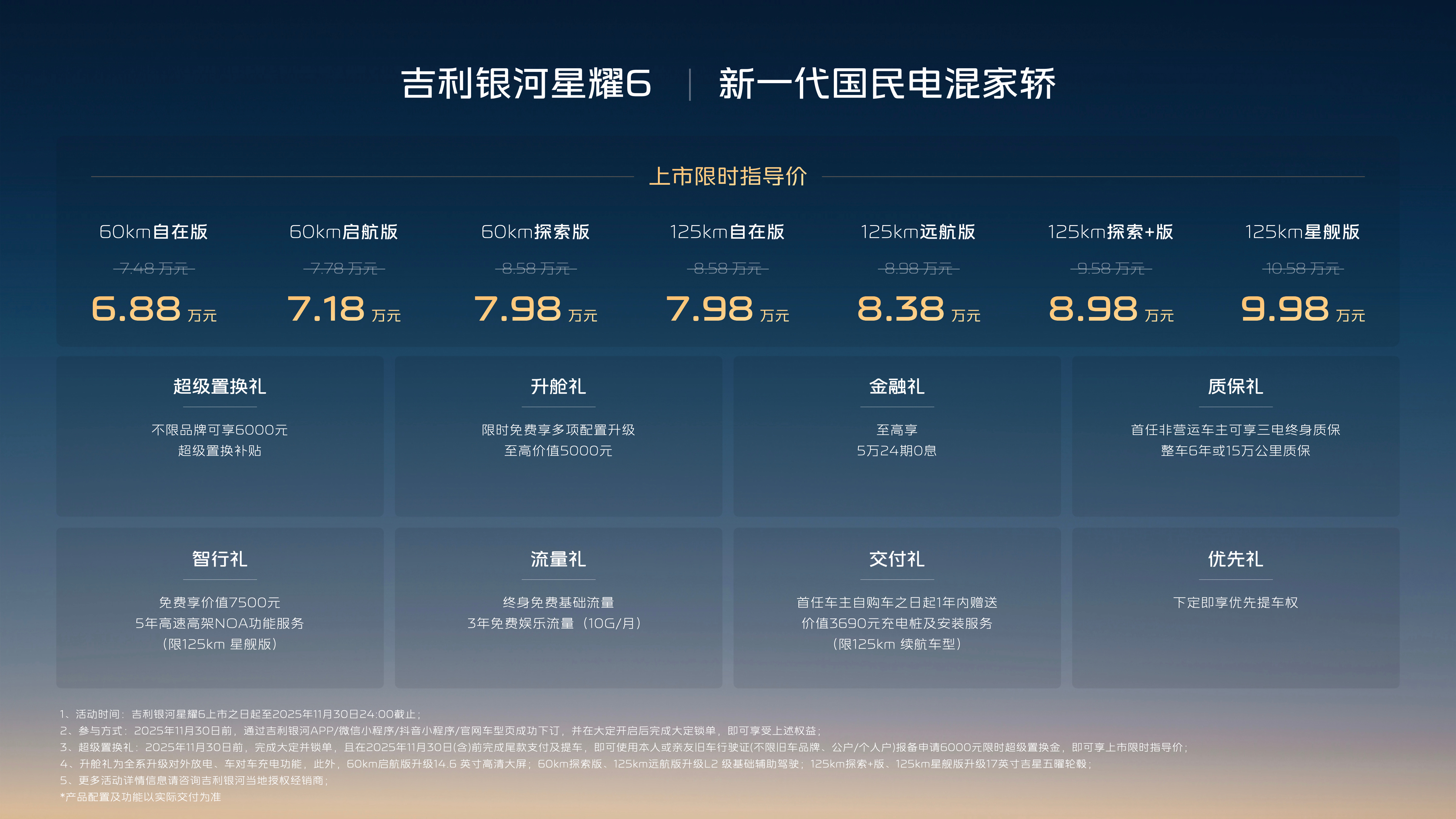 吉利银河星耀6限时指导价6.88万元起新一代国民电混家轿