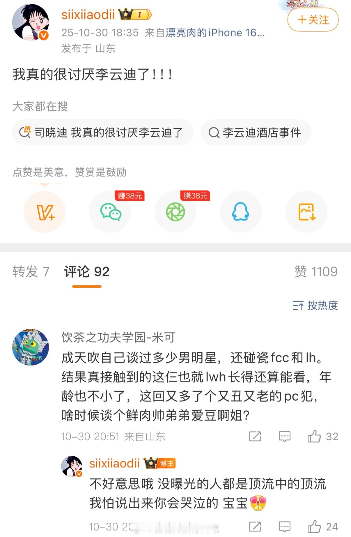 这个博主是李汶翰的前女友司晓迪[震惊]现在爆李云迪的···
