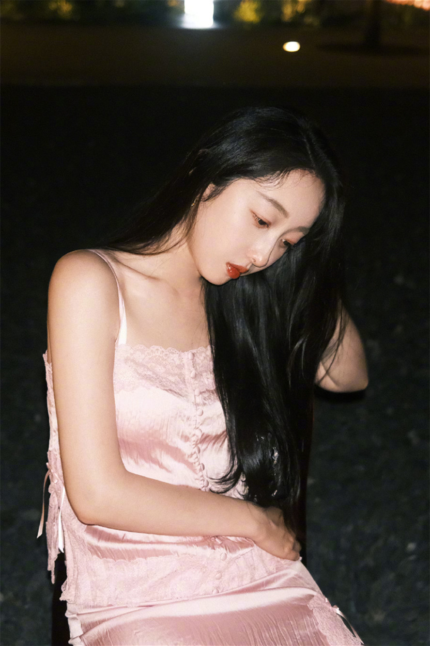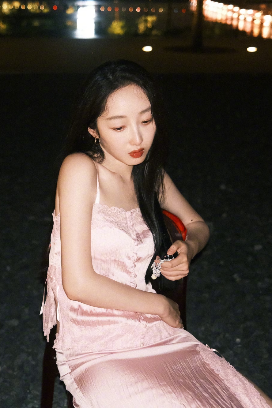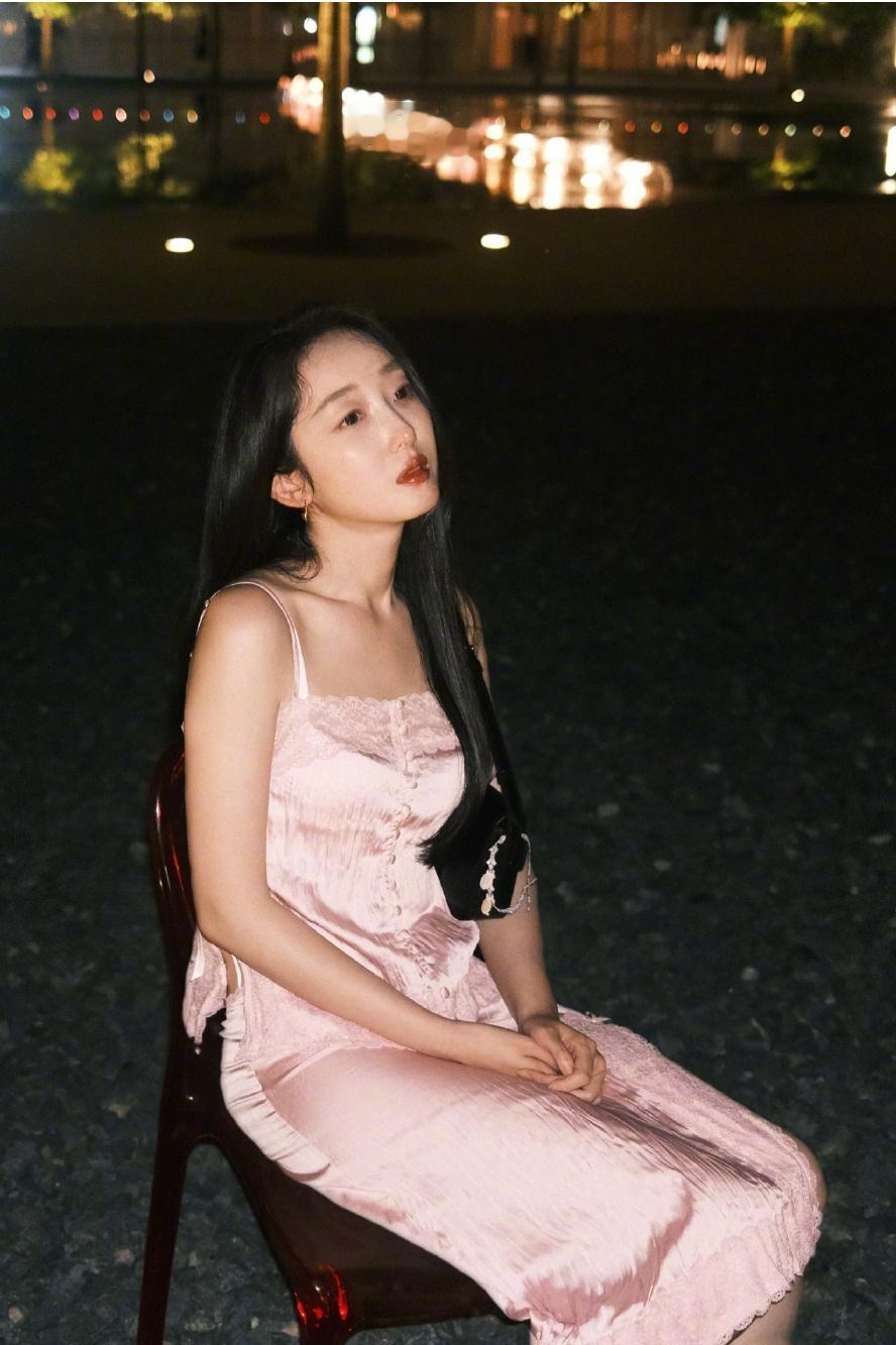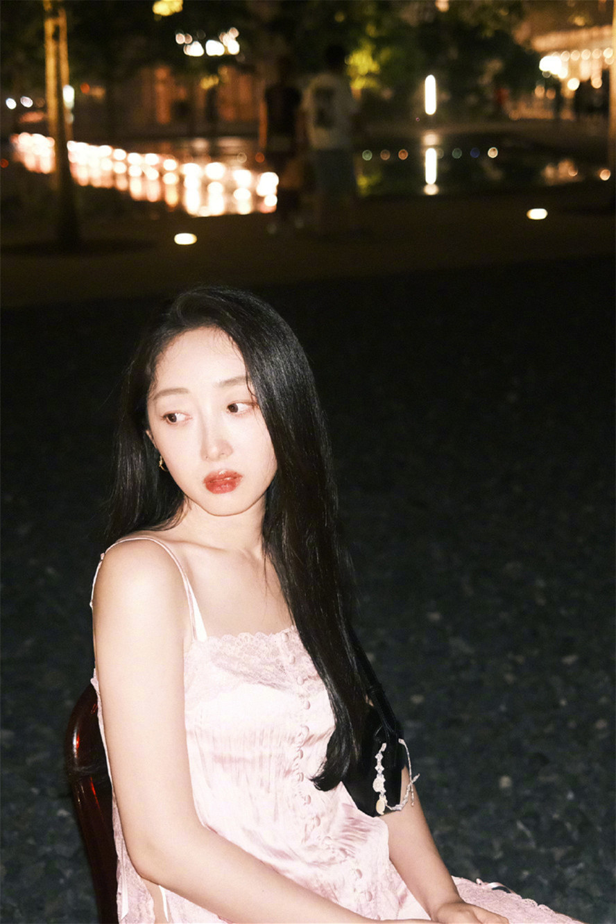 蒋梦婕,美美的氛围感,一袭吊带裙释放自如