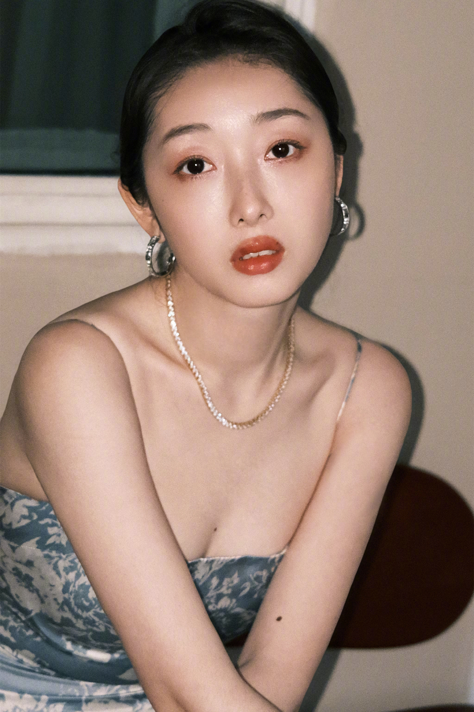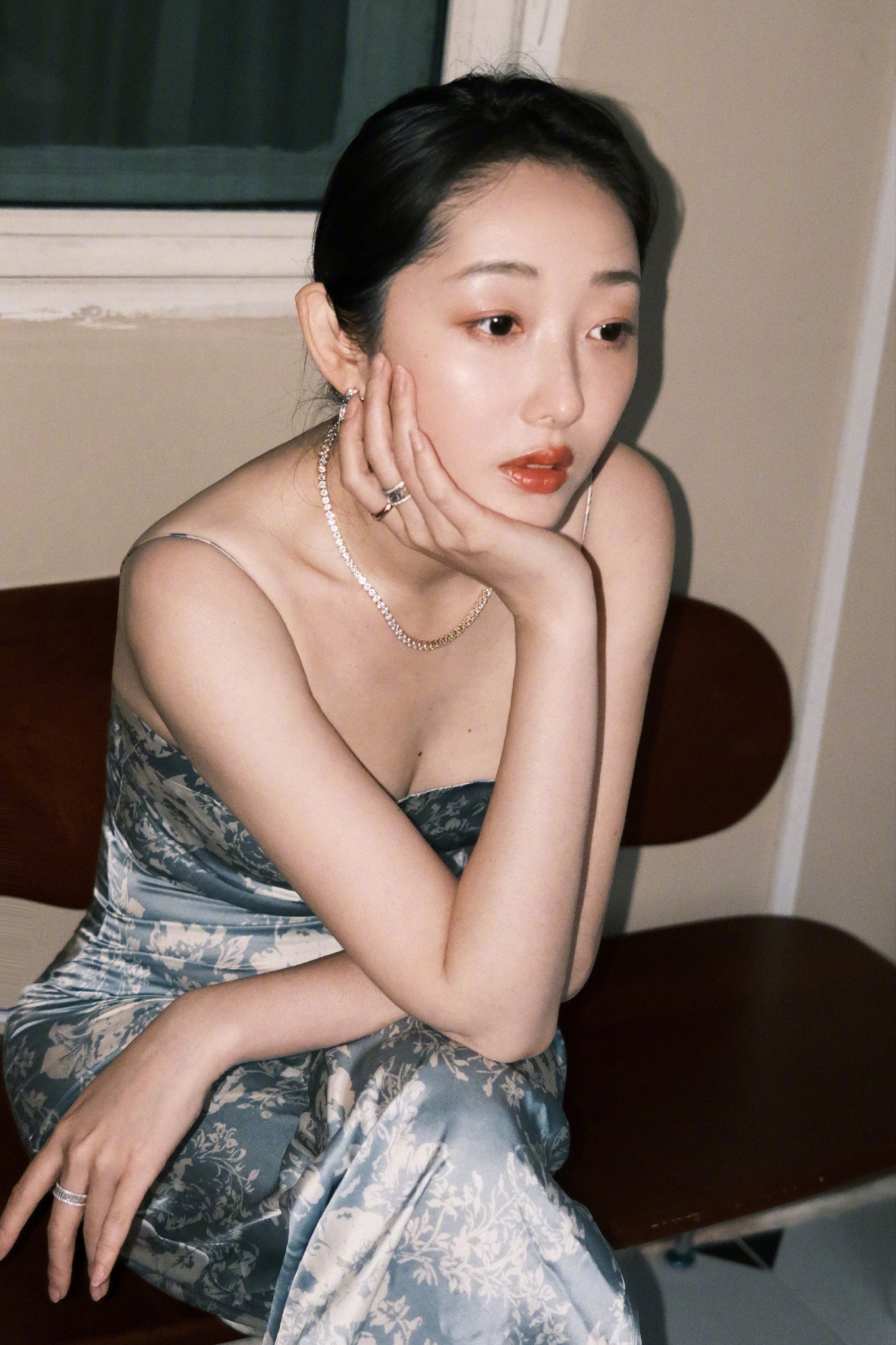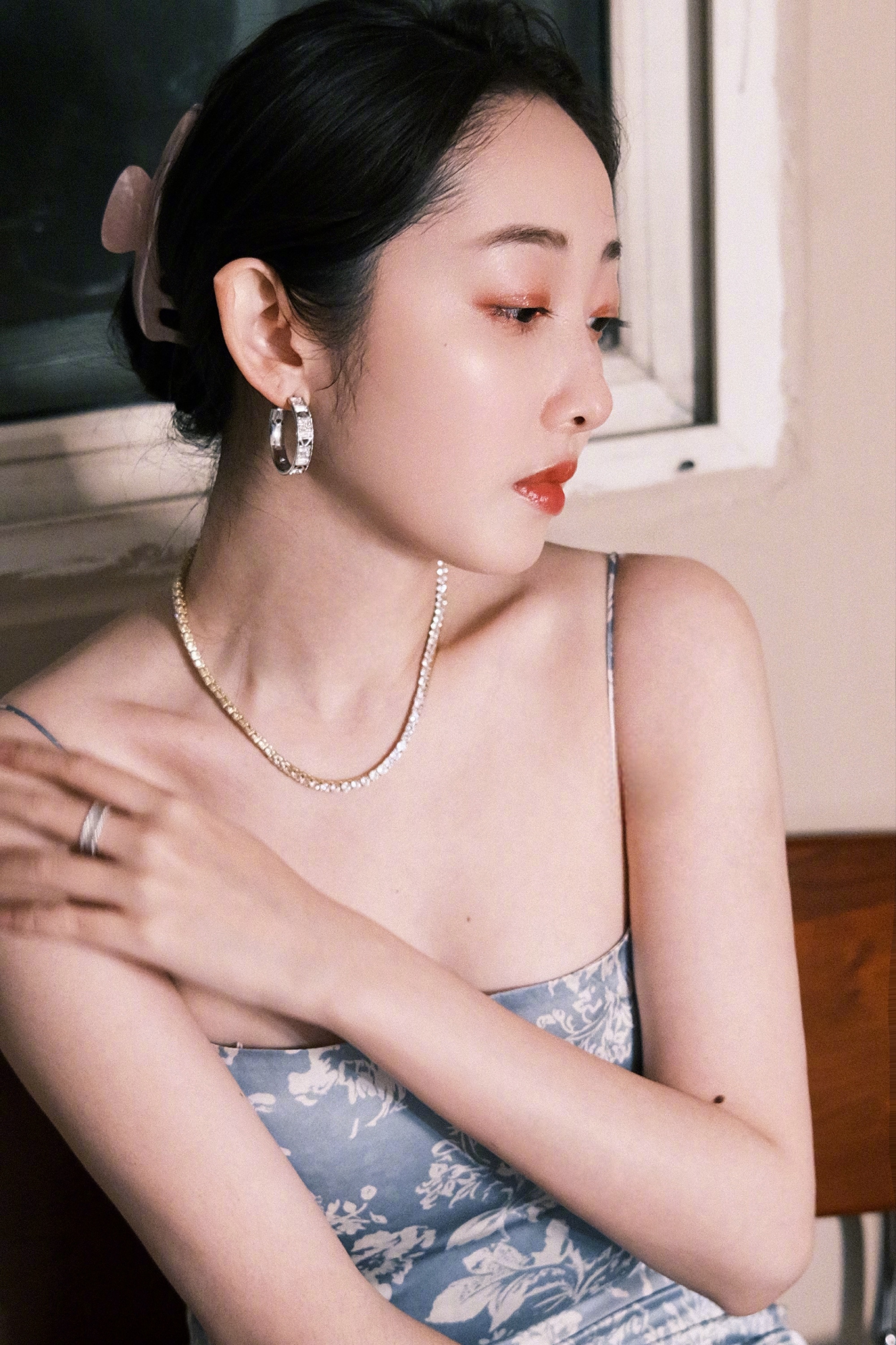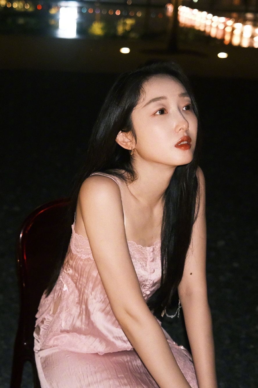 蒋梦婕,美美的氛围感,一袭吊带裙释放自如