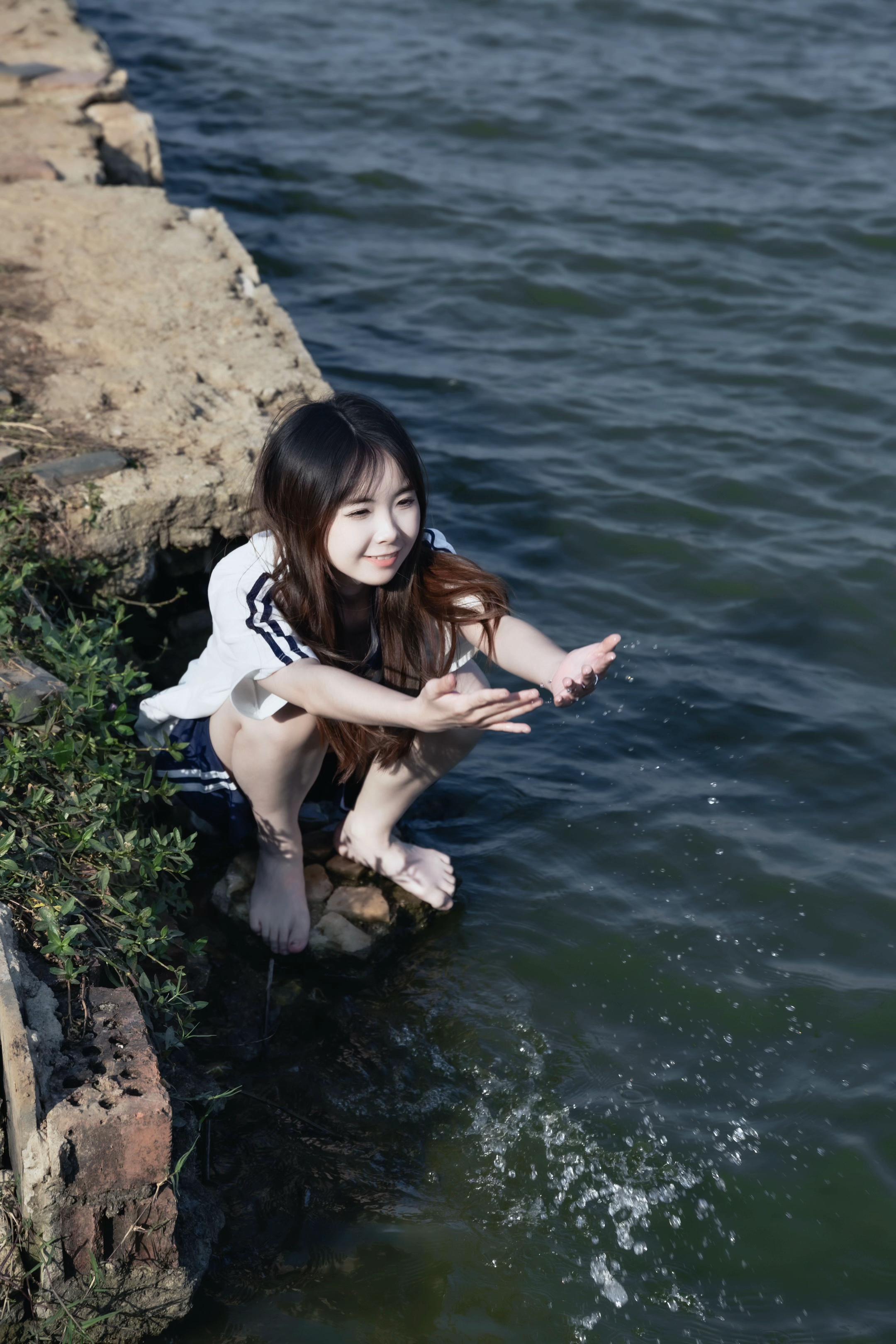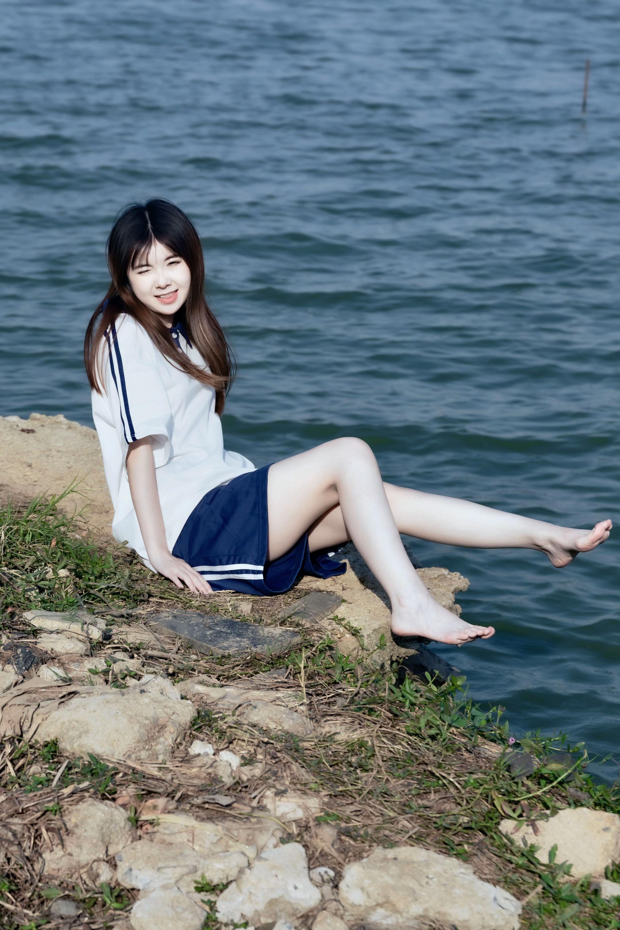 日系少女的湖边午后时光。《户外少女小清新写真》