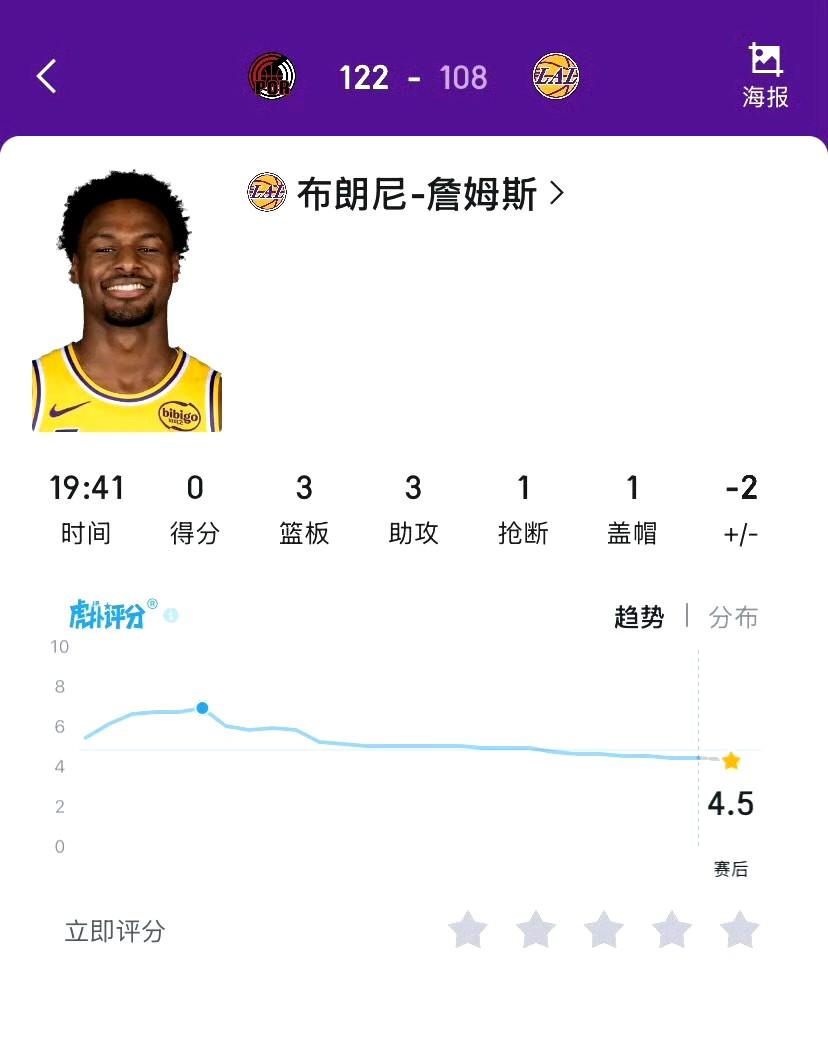 季前赛说他已经练好了,太子要“暴走”?结果呢?布朗尼近5场数据: 1、对阵勇士未登场 2、对阵森林狼登场3分14秒,得0分、0篮板、0助攻。 3、对阵国王未登场 4、对阵开拓者登场19分钟41秒,得0分、3助攻、3篮板。 5、对阵森林狼登场4分59秒,得0分0助0板1失误,正负值+5。