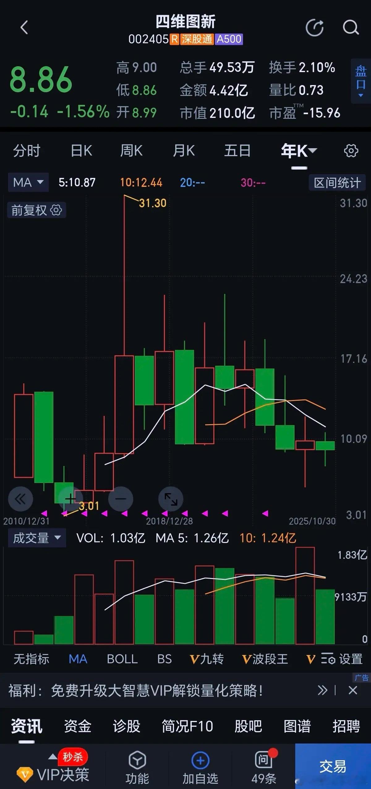 被腾讯抛弃后,四维图新彻彻底底沦为垃圾股,牛市差不多又过一年,股价还在负增长。根