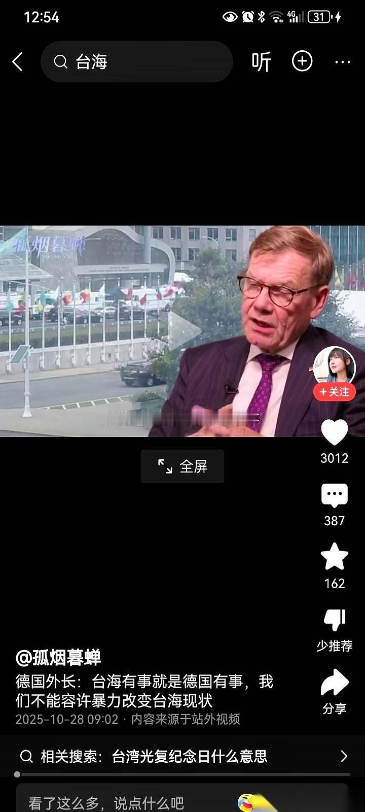 德国也来了。 我有时候真的会恍惚,现在是不是谁都能拿那座小岛,来咱们家门口比划两下? 这感觉太难受了。就像身上有块伤口,一直好不了,还总有人过来戳一下,问你疼不疼。 你说疼,他说你敏感。你说不疼,他下次还来。 总有人说,等,等一个万全的时机。 我就想问问,什么叫万全?敌人给你准备好的时机吗?天底下哪有这种好事。 永远没有所谓的“完美时机”。 几十年前,我们一穷二白,敢在三八线上把世界第一按住摩擦。那会儿有人觉得是“好时机”吗?没有。但那口气,我们争下来了。 现在我们有什么理由瞻前顾后? 这根本不是想不想打仗的问题。 恰恰相反,把这块心病去了,是为了以后再也不用打仗。 是为了让我们的孩子,不用再面对我们今天这种憋屈。