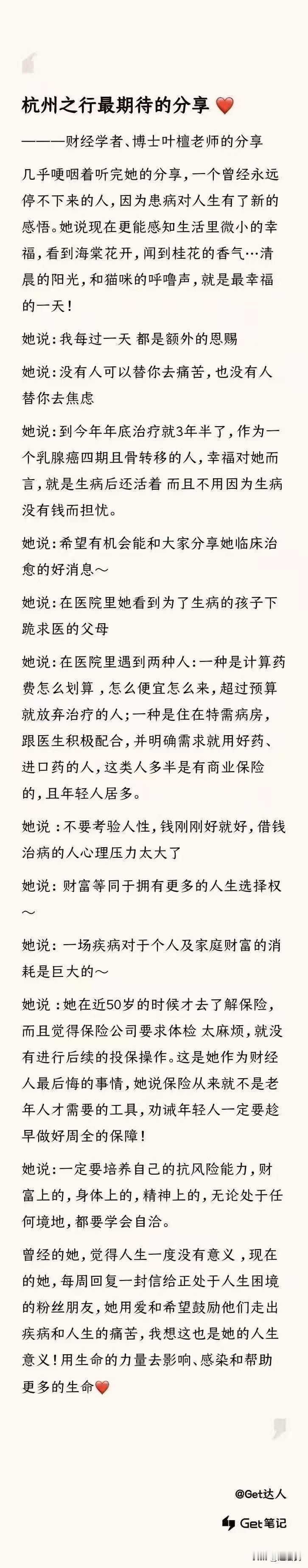 在我的朋友圈看到一位从公关跨界保险朋友分享的图片。 故事里讲的是知名财经博主叶檀分享自己生病治疗和保险的相关经历。 说实话,一开始我对保险销售是比较抗拒抵触的,直到最近我开始换一种心态了解接触保险。 就是感觉他们分享的很多关于人生成长、生病健康的很多内容,还是挺有深度的。 我一直觉得,前些年在咱们中国的保险销售行业,是被做烂了的,胡乱承诺、销售话术、逼单等等策略用的驾轻就熟。 如今随着年轻人保险意识的转变,正好需要一些正规的、积极的、阳光的不坑人的保险销售业态。