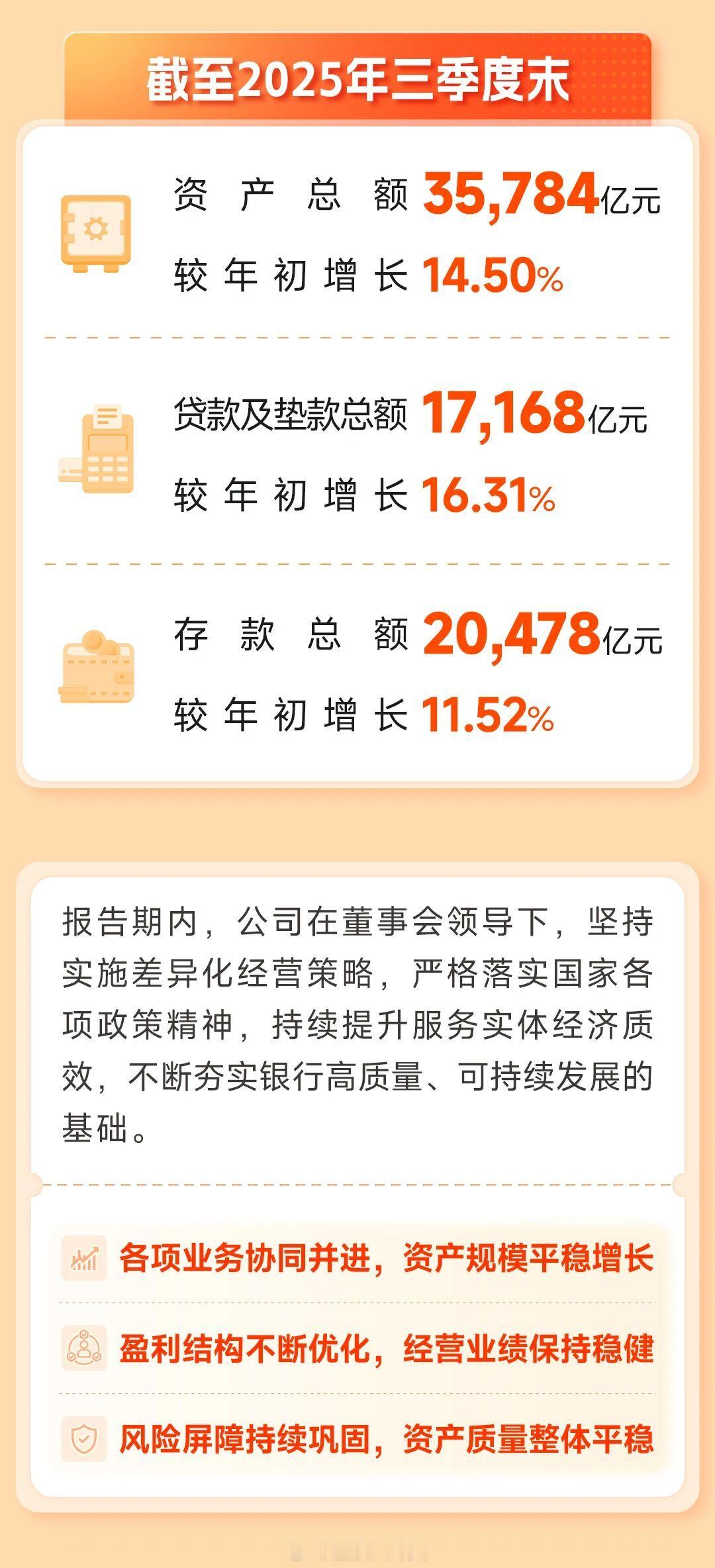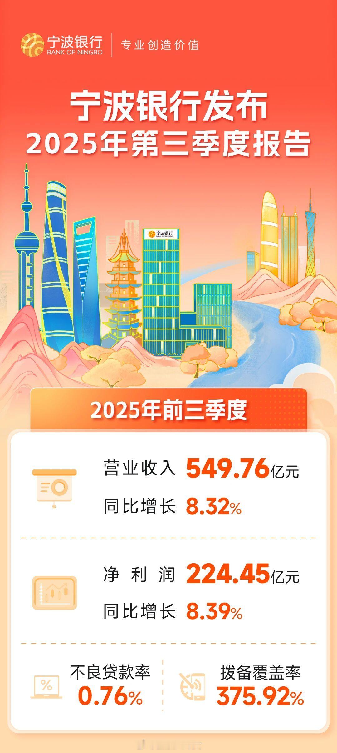 宁波银行发布2025年第三季度报告,前三季净利润224.45亿元,同比增8.39%。业绩稳健,彰显高质量发展成色[并不简单] ​​​