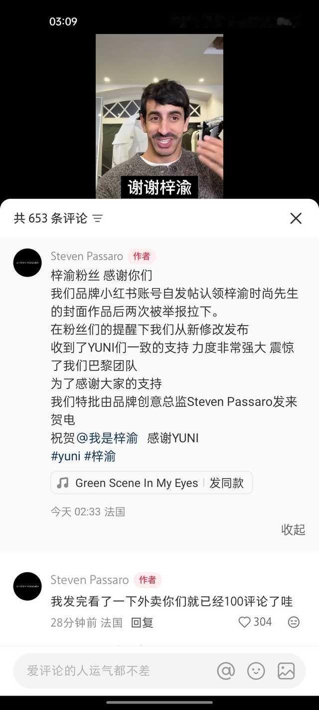 法国设计师录视频感谢梓渝和yuni 高定设计师用中文感谢梓渝粉丝