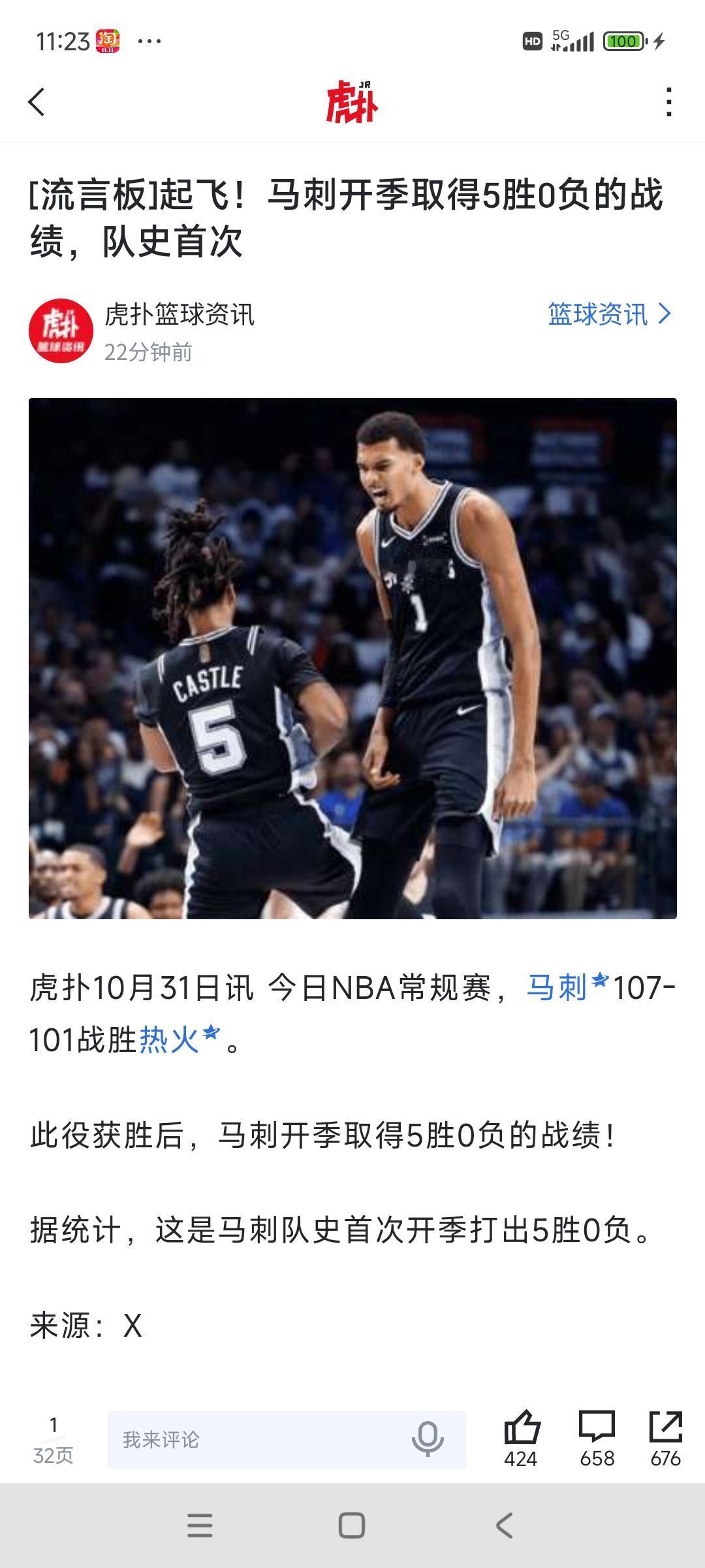 马刺这么厉害,队史首次5连胜开局,该喊马刺总冠军了吧! 这个队是小城市,平时吸引不到球星,一旦抽到超级状元,马刺崛起可能性太高。 我还记得火箭那年和马刺都是垫底,结果火箭没抽到状元签,文班亚马没过来。 感觉都是天命,马刺王朝来了。[可怜]