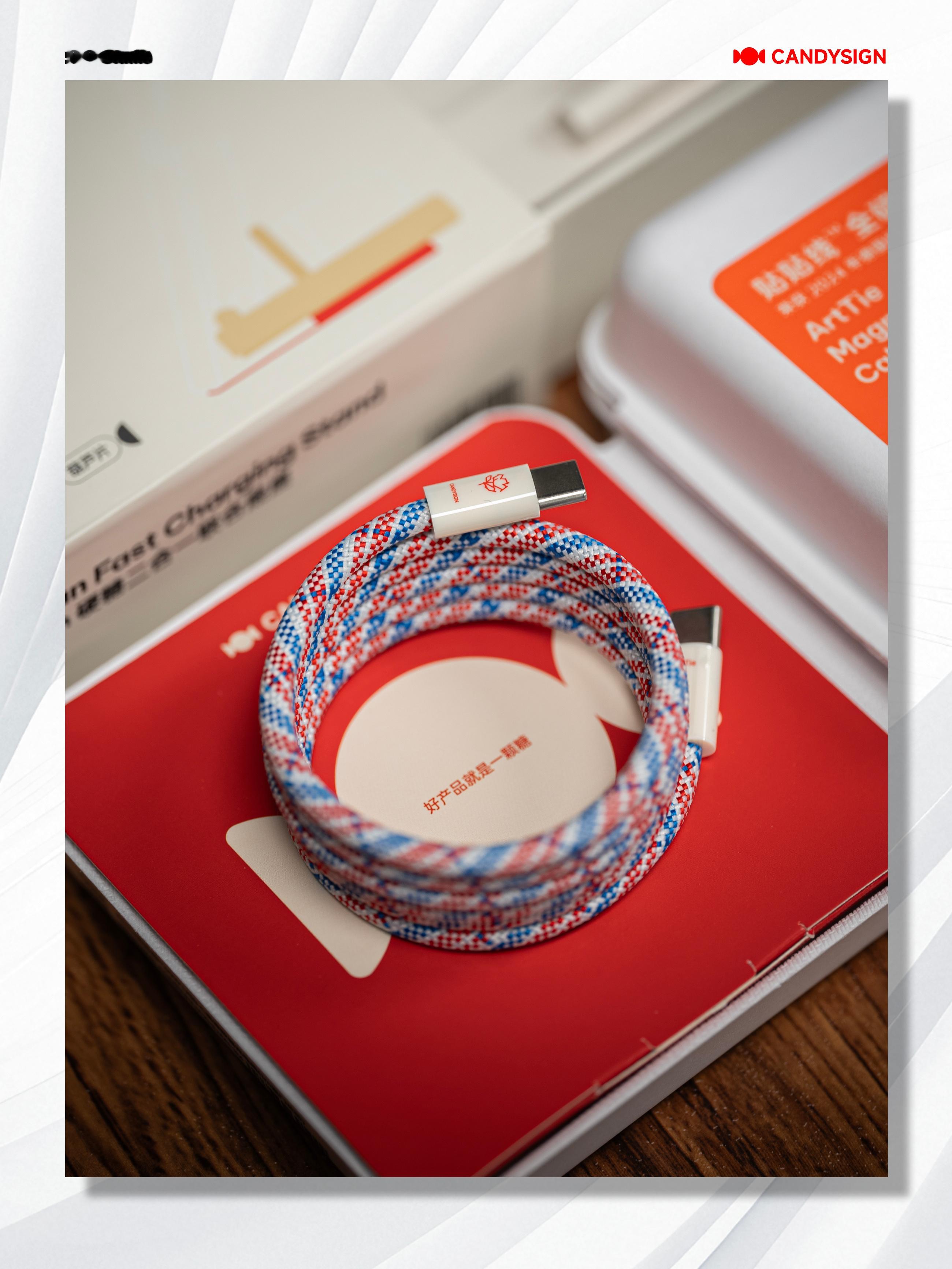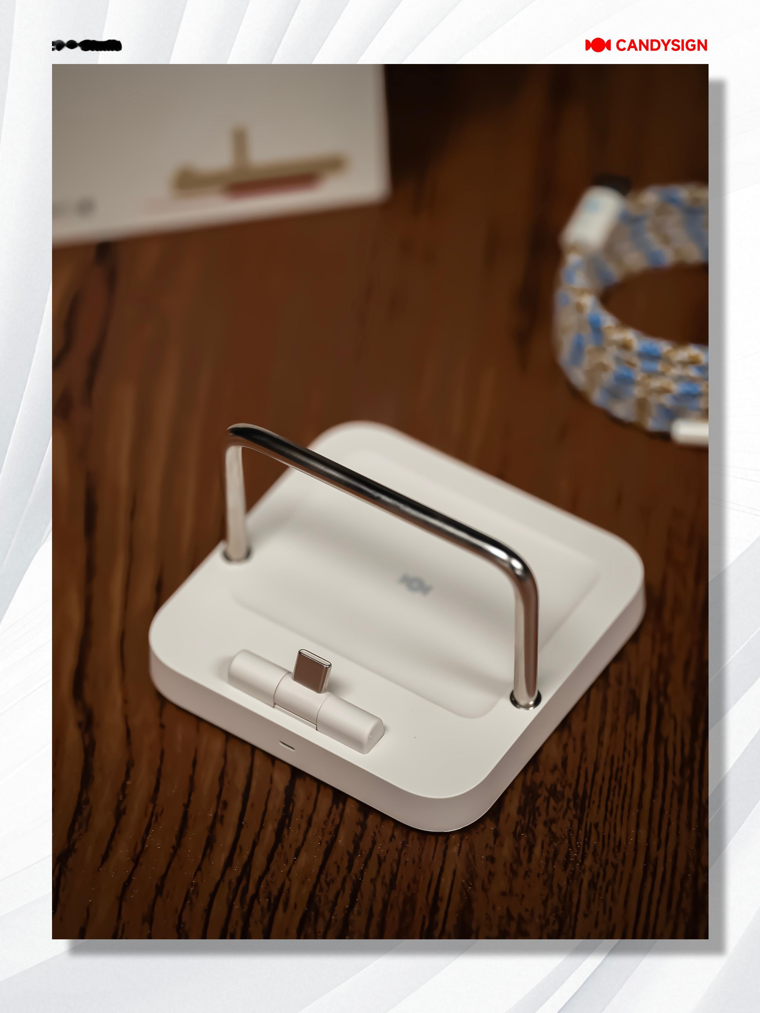 里面有一个二合一联合底座和一条磁吸线。底座的支架部分采用的是镂空设计,能够边充边用,USB-C快充口还可以转动倾角,能够支持除手机外的更多设备。并且为手机、平板等充电的同时还能够为耳机盒充电。磁吸线的线身也有磁吸的功能,收纳起来很方便。大伙喜欢这一套吗?